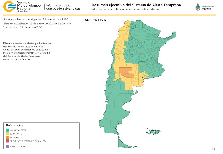 Mínima (Malargüe y zonas bajas del Valle de Uco): 16 °C.
