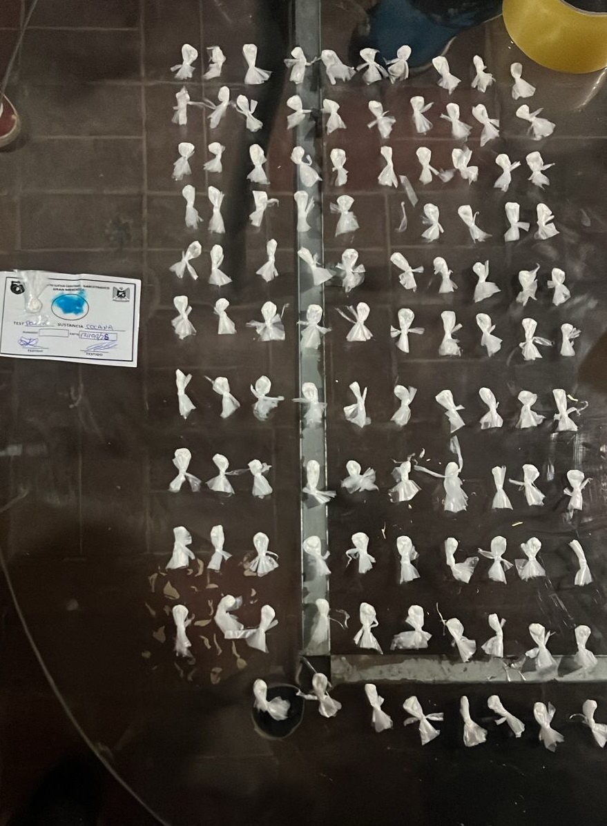 Durante el allanamiento, fueron aprehendidos un hombre y una mujer que se encontraban en la vivienda. En el lugar, los investigadores secuestraron $265.500 en efectivo, 174 envoltorios de nylon con cocaína, elementos de corte y fraccionamiento y cuatro teléfonos celulares.