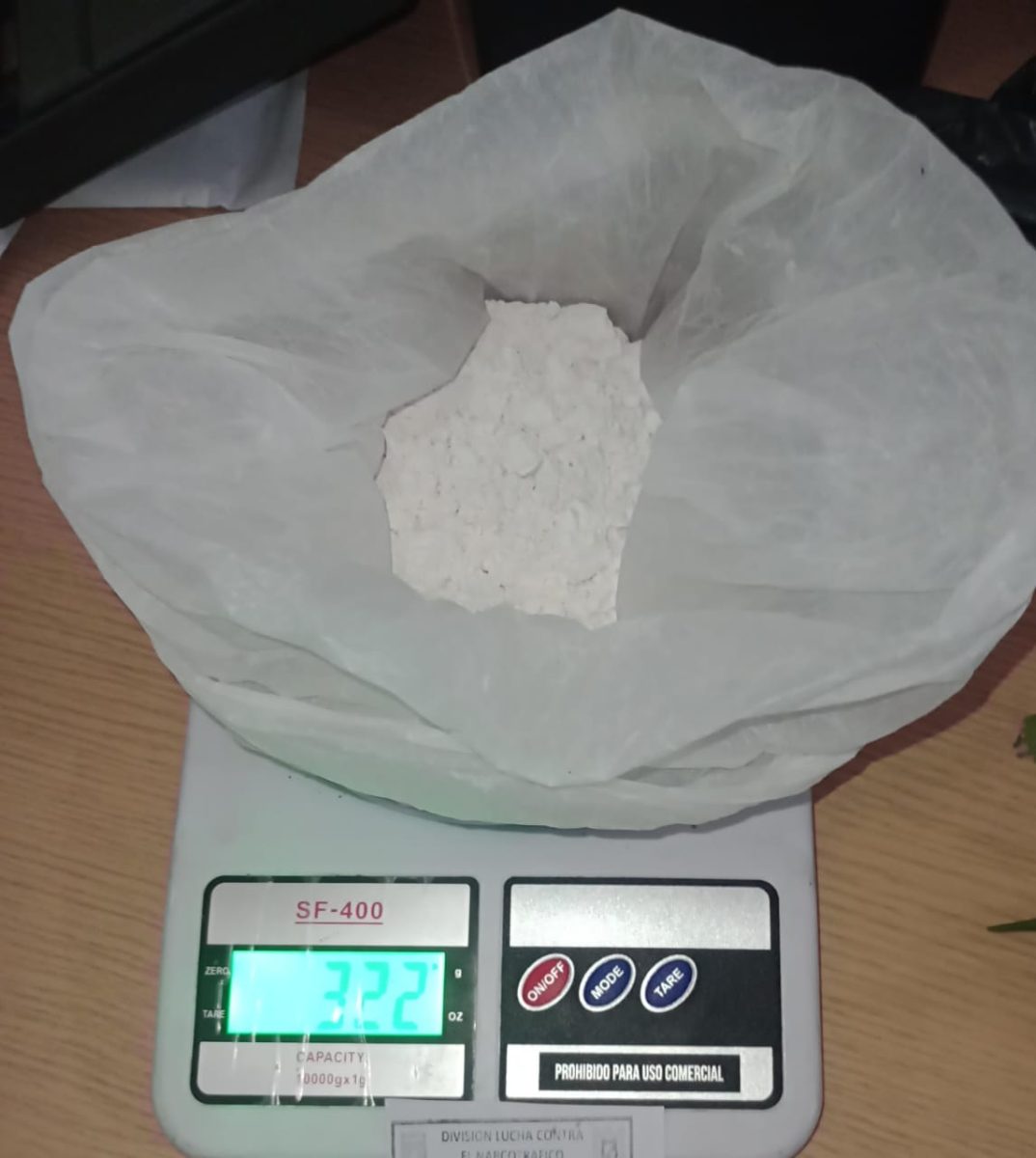 Durante el procedimiento se incautaron seis plantines de cannabis sativa (319 gramos), 322 gramos de cocaína, recortes de nailon, tijeras, teléfonos celulares y una importante suma de dinero.