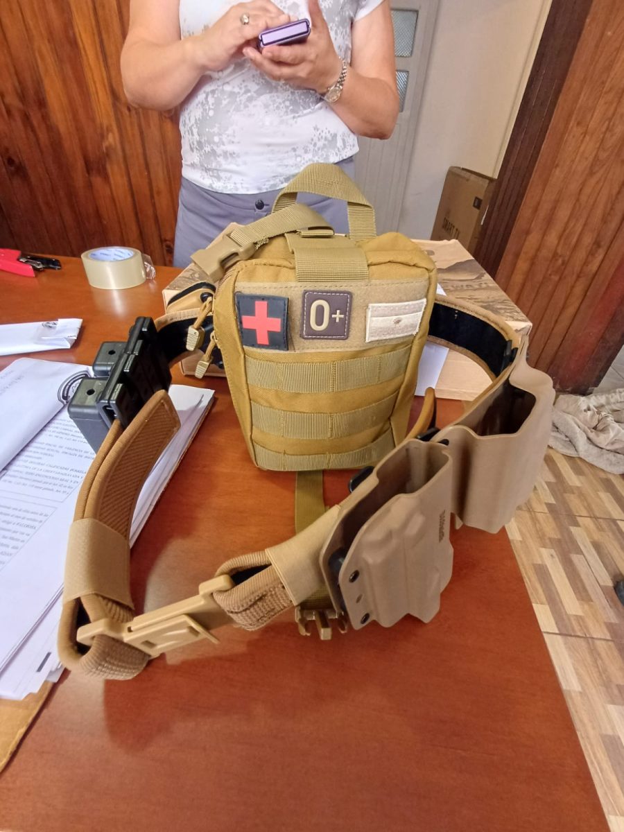 Durante los allanamientos, el personal policial secuestró un arma de fuego tipo pistola calibre 9 milímetros marca Glock, dos cargadores con 19 cartuchos y una caja con 50 municiones del mismo calibre punta hueca. Además, se incautaron dos riñoneras, un cortaplumas, una tijera, una navaja, un correaje tipo militar con dos pistoleras de polímero y diversos elementos de primeros auxilios.