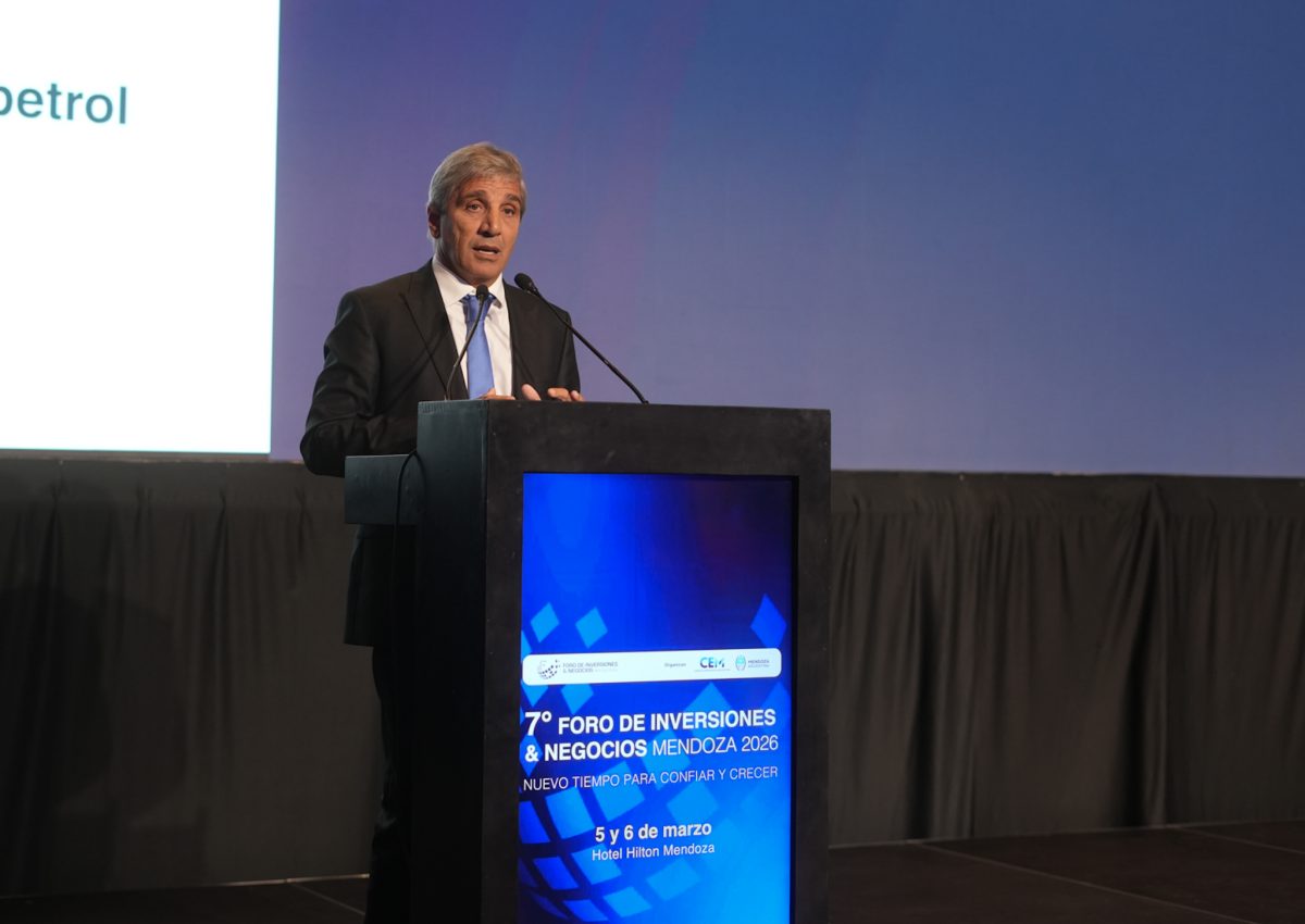 El ministro de Economía de la Nación, Luis Caputo, participó en el foro de inversiones que se realizó en Mendoza, donde expuso sobre la situación macroeconómica del país, el proceso de estabilización en marcha y el rumbo de la política económica. Lo hizo junto al Gobernador Alfredo Cornejo y el presidente del Consejo Empresario Mendocino, Martín Clement, quienes coincidieron en la necesidad de reconstruir la confianza de la ciudadanía para salir de la situación actual que vive el país y consolidar el crecimiento.