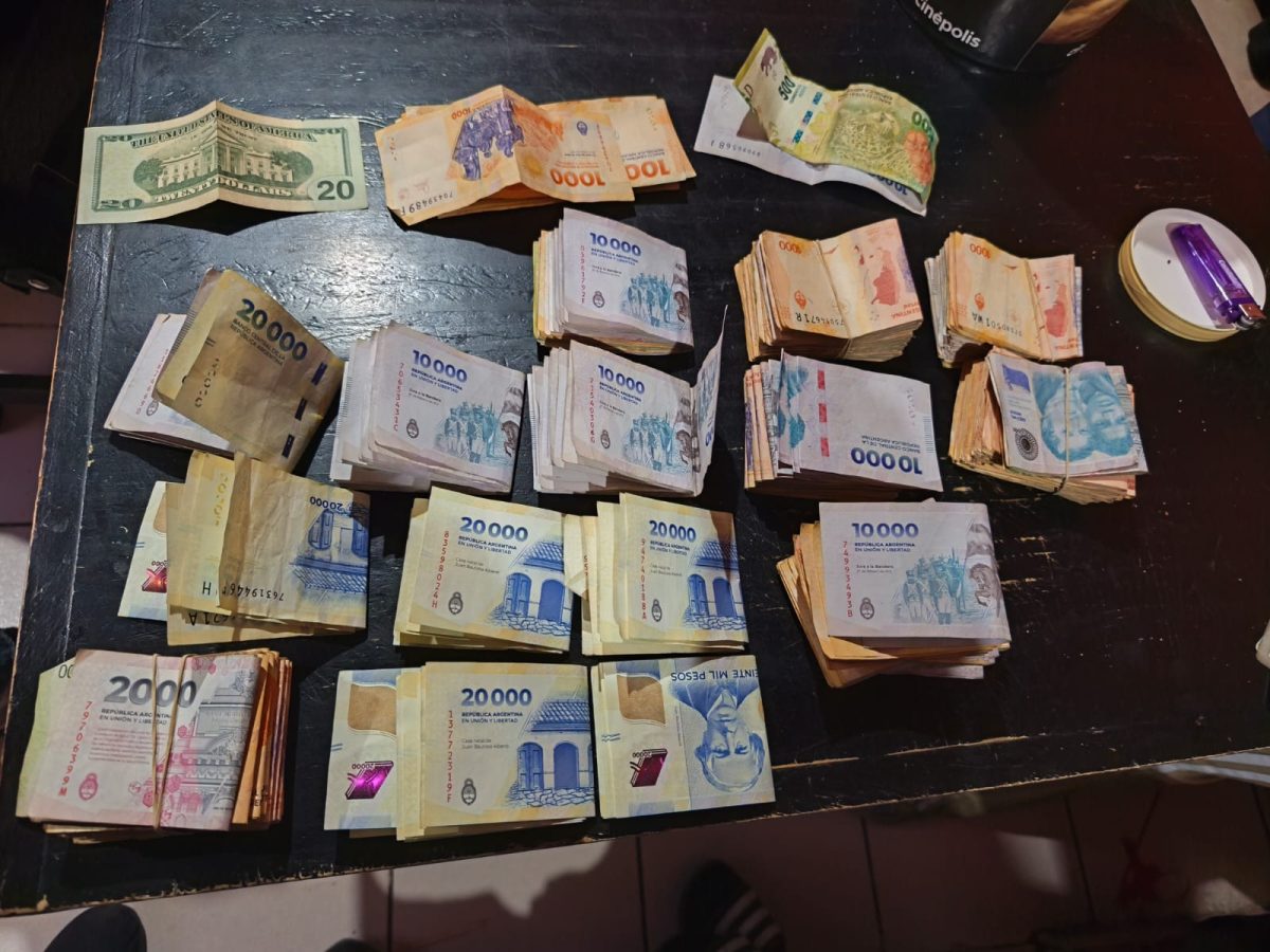 En cuanto al dinero, se hallaron más de 2,5 millones de pesos argentinos, junto con billetes en dólares, euros, pesos chilenos y uruguayos, además de documentación y anotaciones que serán incorporadas a la causa.