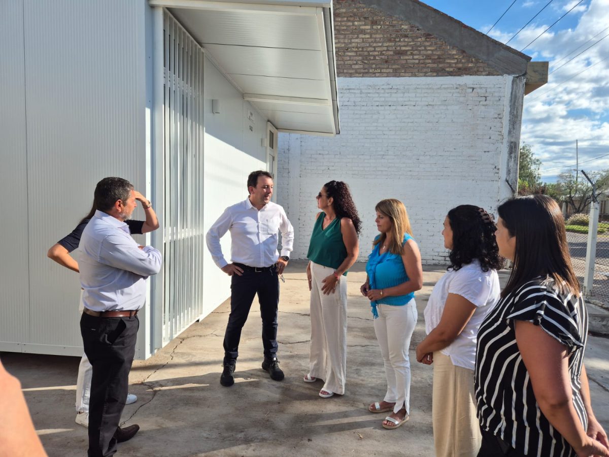 Este jueves el ministro de Educación, Cultura, Infancias y DGE, Tadeo García Zalazar, visitó la escuela de Educación Integral 2-703 Sergio Catena, del departamento de Rivadavia, donde se están instalando dos aulas portantes, y sostuvo que trabajar sobre la ampliación de aulas genera más inclusión educativa y mejores ámbitos para desarrollar los aprendizajes.