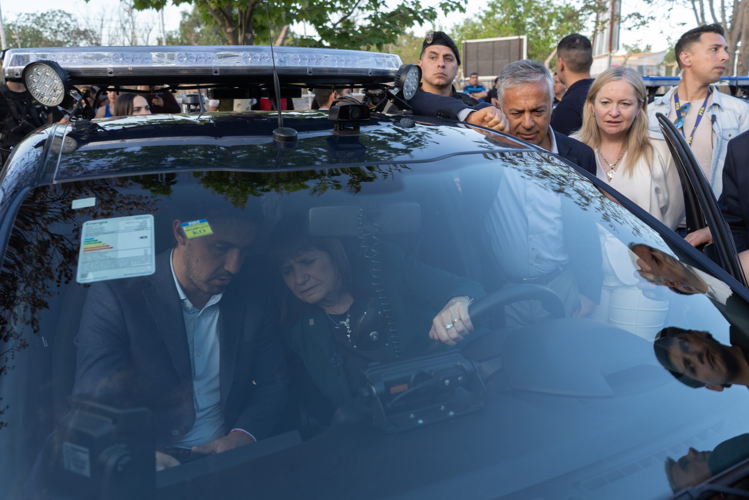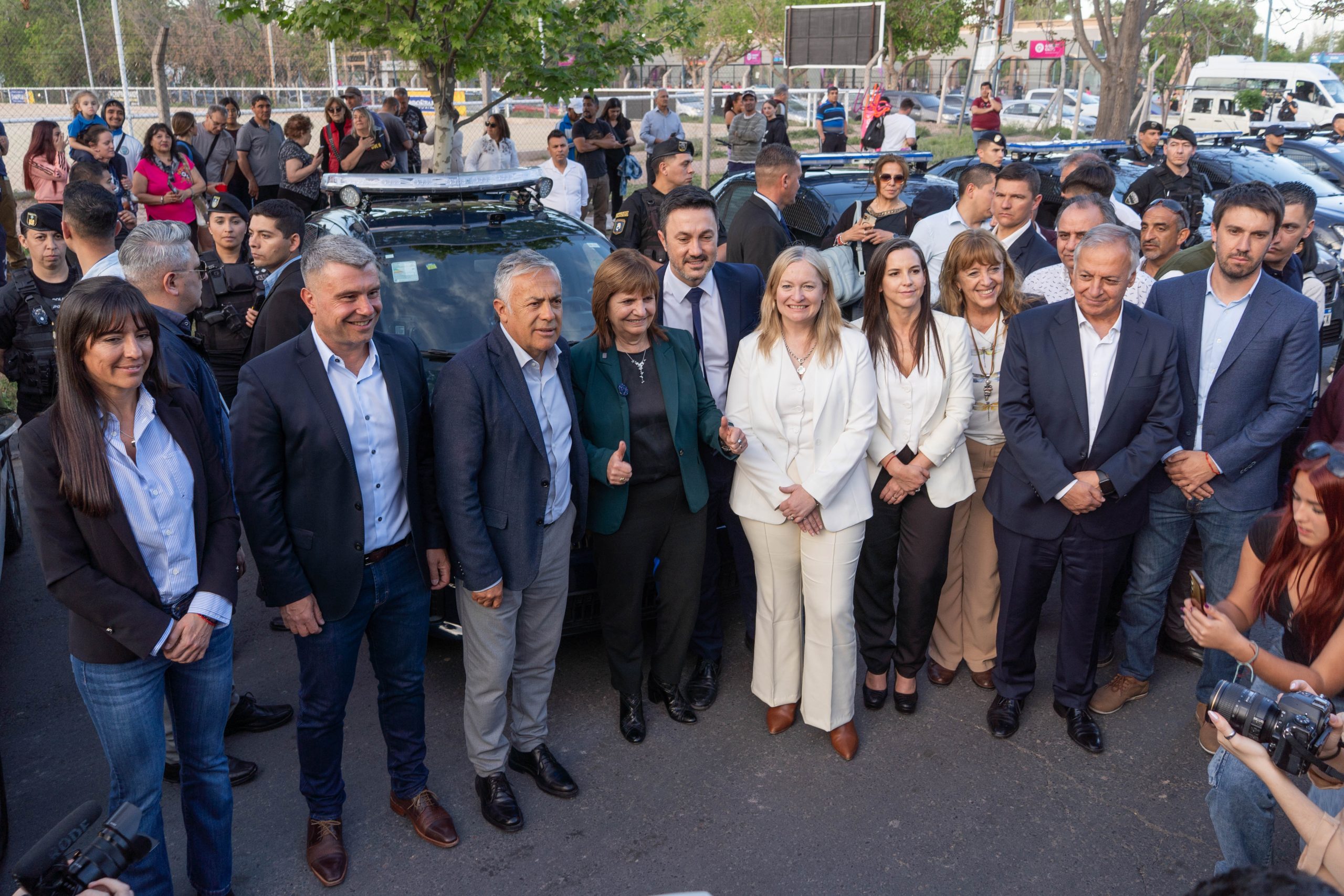 El Gobernador Alfredo Cornejo, junto a la vicegobernadora Hebe Casado, los ministros nacionales de Seguridad, Patricia Bullrich, y de Defensa, Luis Petri, y la ministra de Seguridad y Justicia de Mendoza, Mercedes Rus, presentó los nuevos móviles tecnológicos que se incorporan a la Policía de Mendoza en el marco del Programa de Patrulleros Inteligentes.