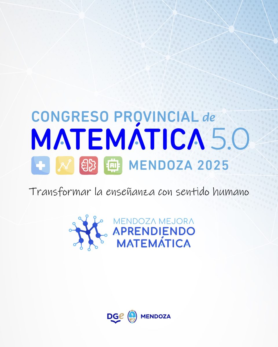 La Dirección General de Escuelas invita a los docentes, directores y supervisores de todos los niveles y modalidades a participar den el Congreso Provincial Matemática 5.0: «Transformar la enseñanza con sentido humano», en el marco de las acciones que se vienen desarrollando junto al Plan Provincial Mendoza Mejora Aprendiendo Matemática.