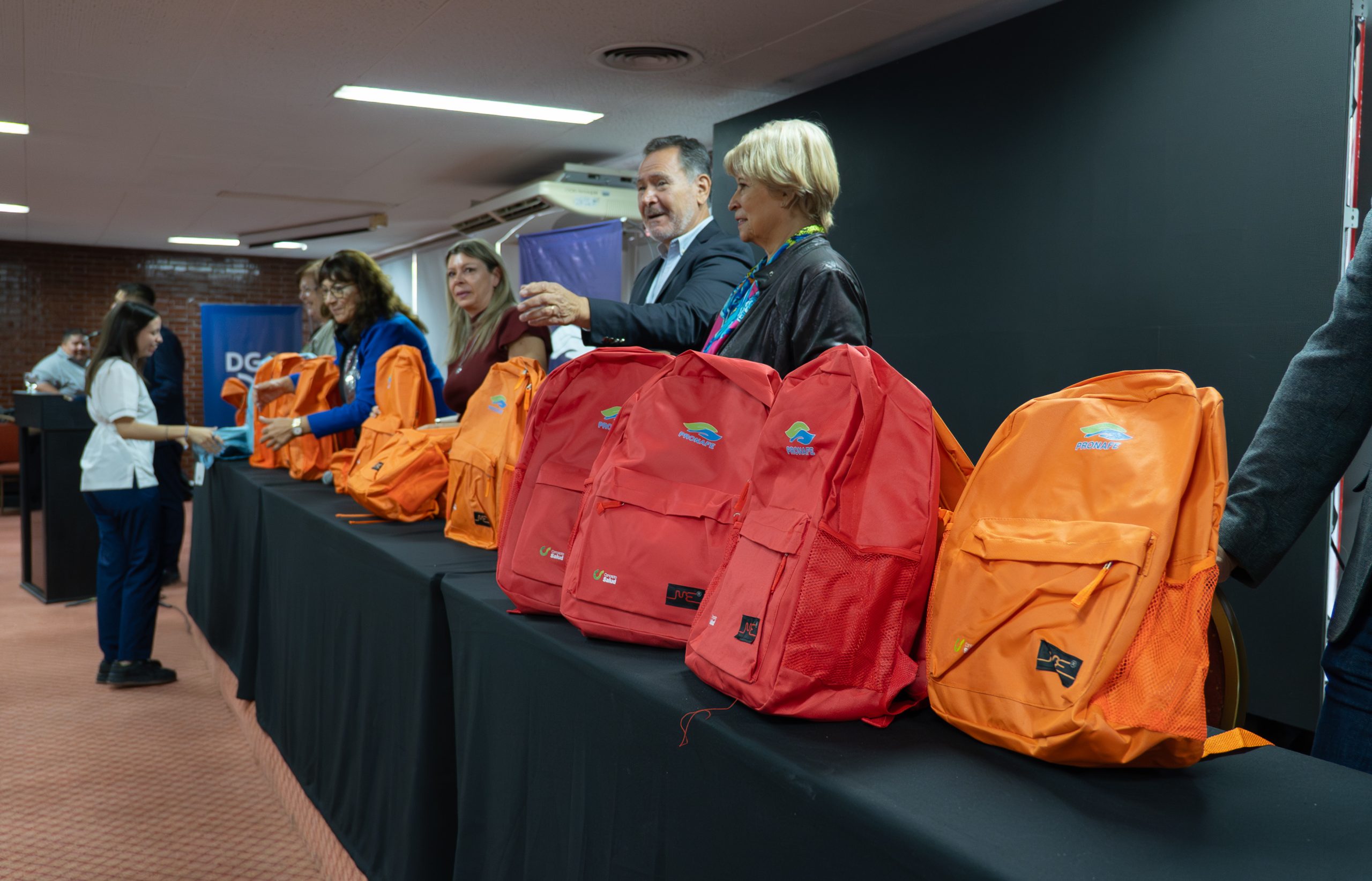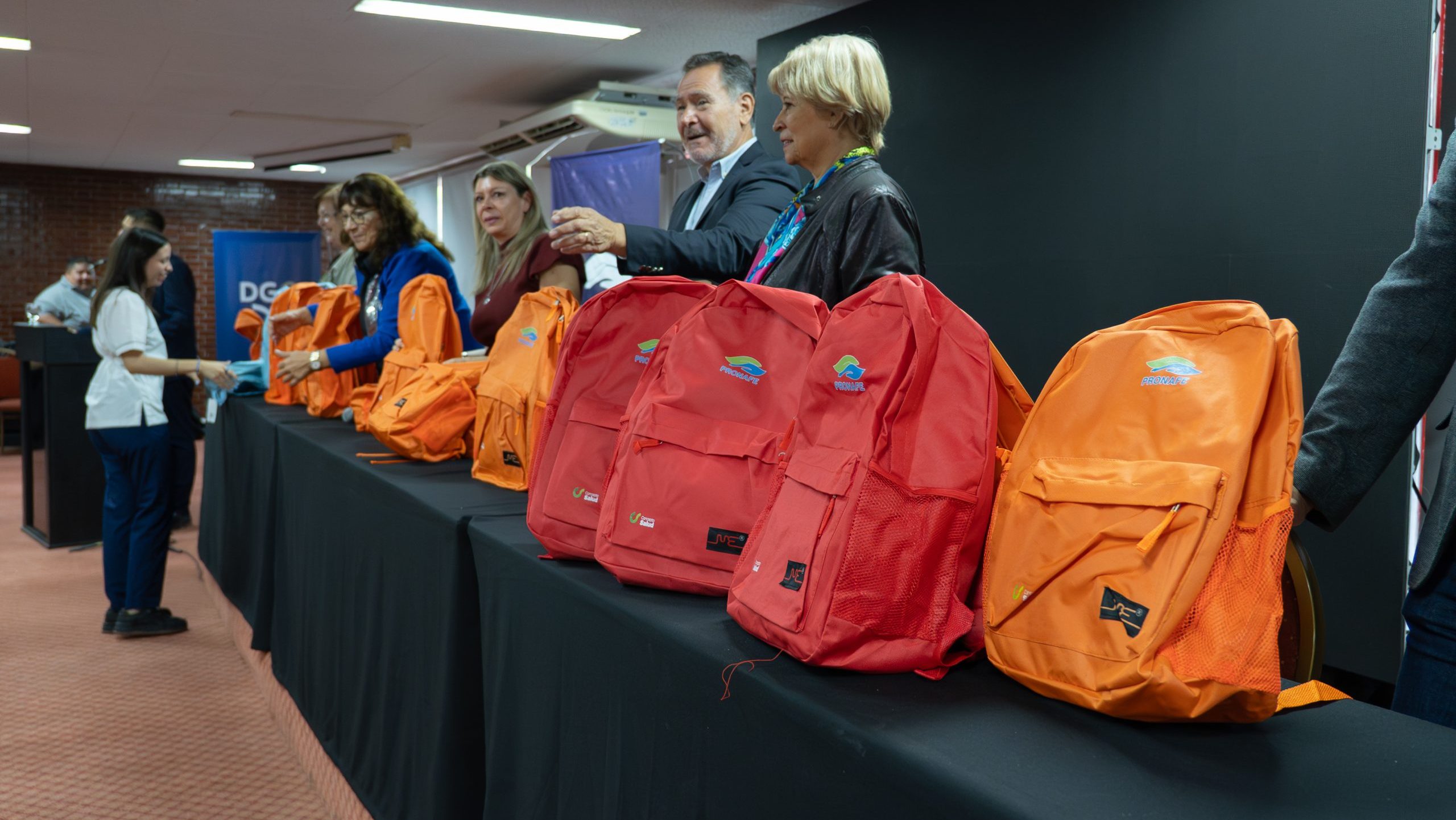 La titular de Educación Superior de la DGE, Mariela Ramos, declaró en relación al evento: “estamos haciendo entrega de 400 mochilas como parte del programa PRONAFE, cuyo objetivo es la mejora de la calidad y de la formación de los enfermeros del país. Dentro de este programa, para los estudiantes hay dos acciones: becas y la entrega de una mochila técnica que permite mejorar sus prácticas profesionalizantes”, detalló la funcionaria.