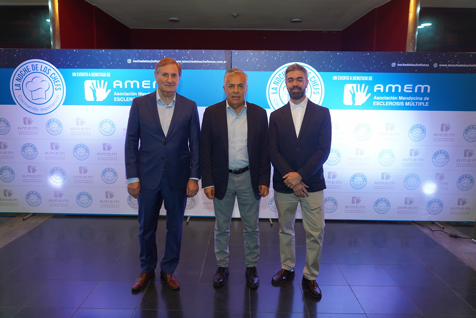 Este miércoles, el Gobernador Alfredo Cornejo, asistió al encuentro gastronómico “La Noche de los Chefs”, encabezado por el presidente de AMEN, Juan Carlos Meca, y el vicepresidente Carlos Gordillo. Se trata de una actividad que se realiza a beneficio de la Asociación Mendocina de Esclerosis Múltiple (AMEM).