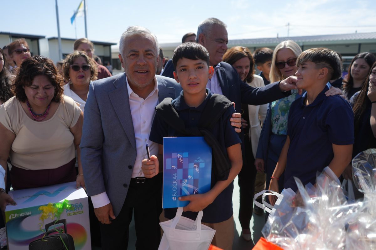 El Gobernador Alfredo Cornejo, junto a la vicegobernadora Hebe Casado; el ministro de Educación, Cultura, Infancias y DGE, Tadeo García Zalazar, y el intendente de Lavalle, Edgardo González, encabezaron el inicio del ciclo lectivo 2026 en la nueva Escuela 4-269 Centro de Innovación Educativa Tecnológica (CIET), ubicada en bulevar Belgrano empalme Ruta Provincial 34, Barrio Islas Malvinas de Villa Tulumaya.