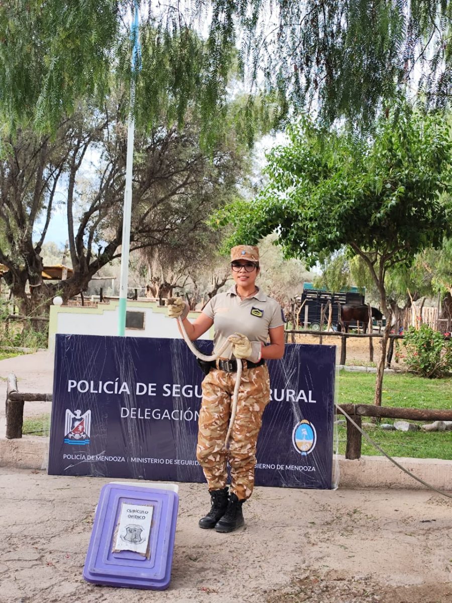 La auxiliar superior Andrea Vivares, con 18 años de servicio, forma parte de la historia viva de esta unidad. Desde sus primeros días encontró en la especialidad una vocación que combina el servicio policial con el compromiso ambiental. “Estoy orgullosa de pertenecer a esta institución y de trabajar con mis compañeros y jefes, que siempre nos acompañan. Es un trabajo especial, hermoso, porque trabajamos con animales”, expresó.