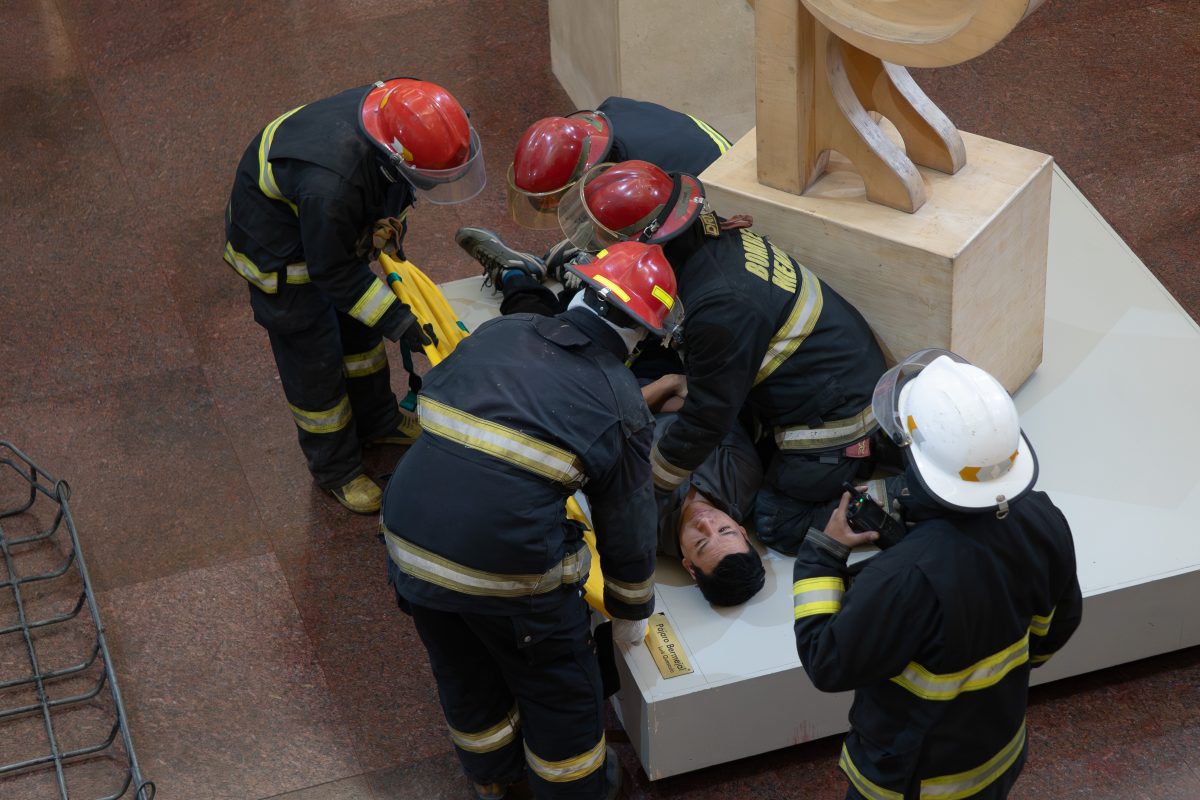 El subcomisario Jorge García, de la Dirección de Bomberos, detalló que se afectaron dos autobombas y ocho efectivos para garantizar la seguridad del operativo. “La primera autobomba activó la señal sonora que marcó el inicio del simulacro y aseguró las maniobras del helicóptero. La segunda trabajó en la búsqueda y evacuación de una víctima lesionada grave, asistida por el SEC y luego aeroevacuada”, precisó.