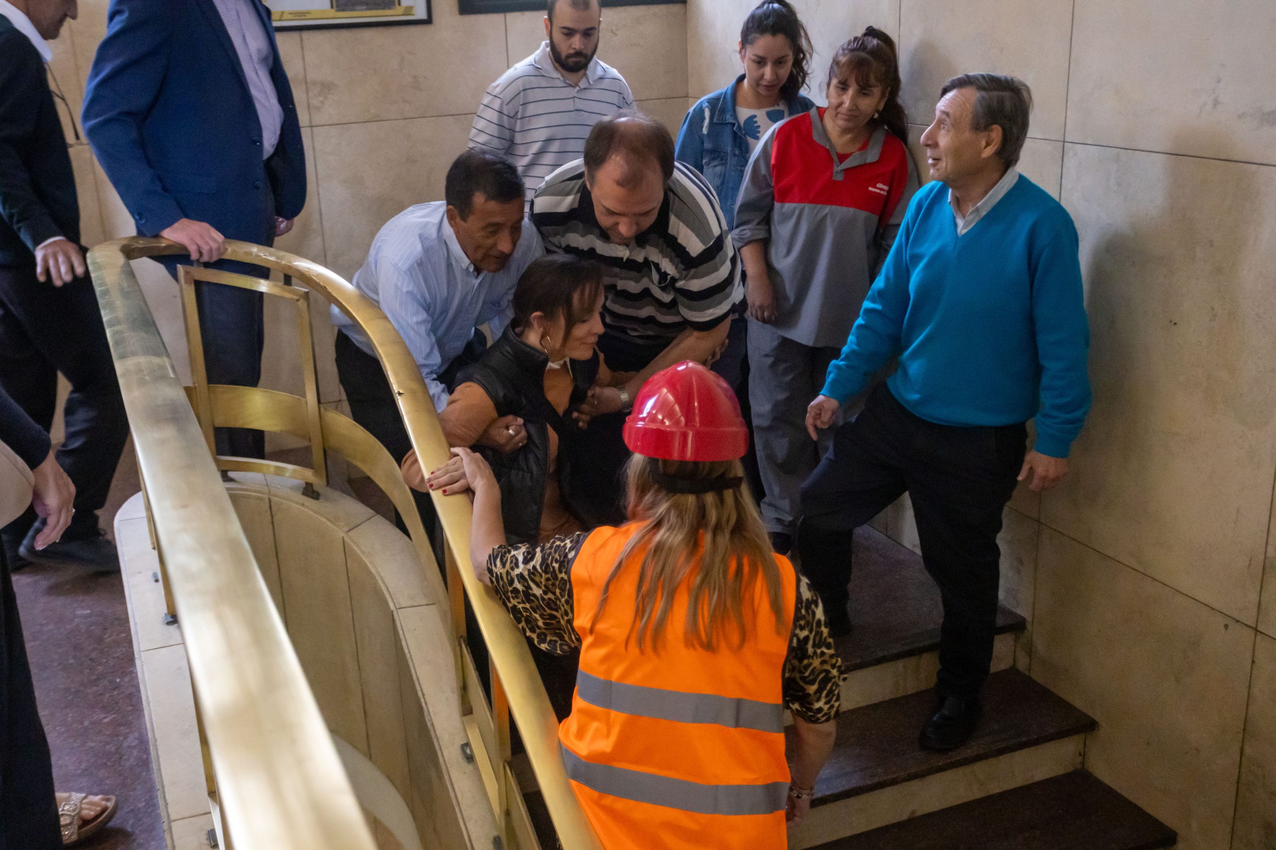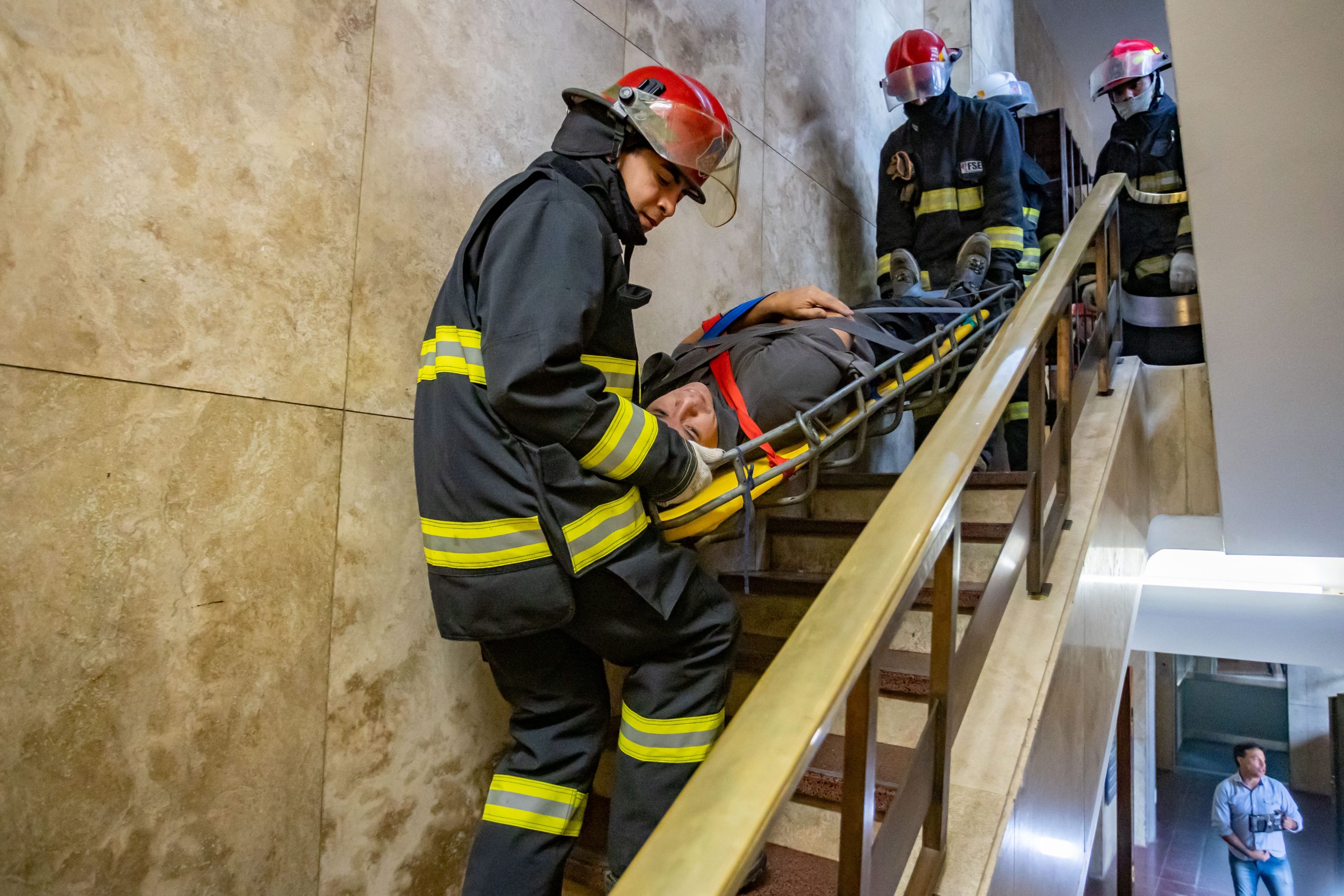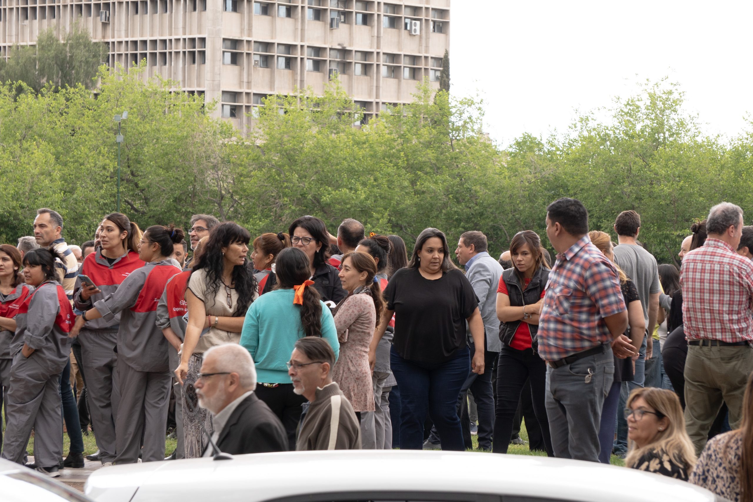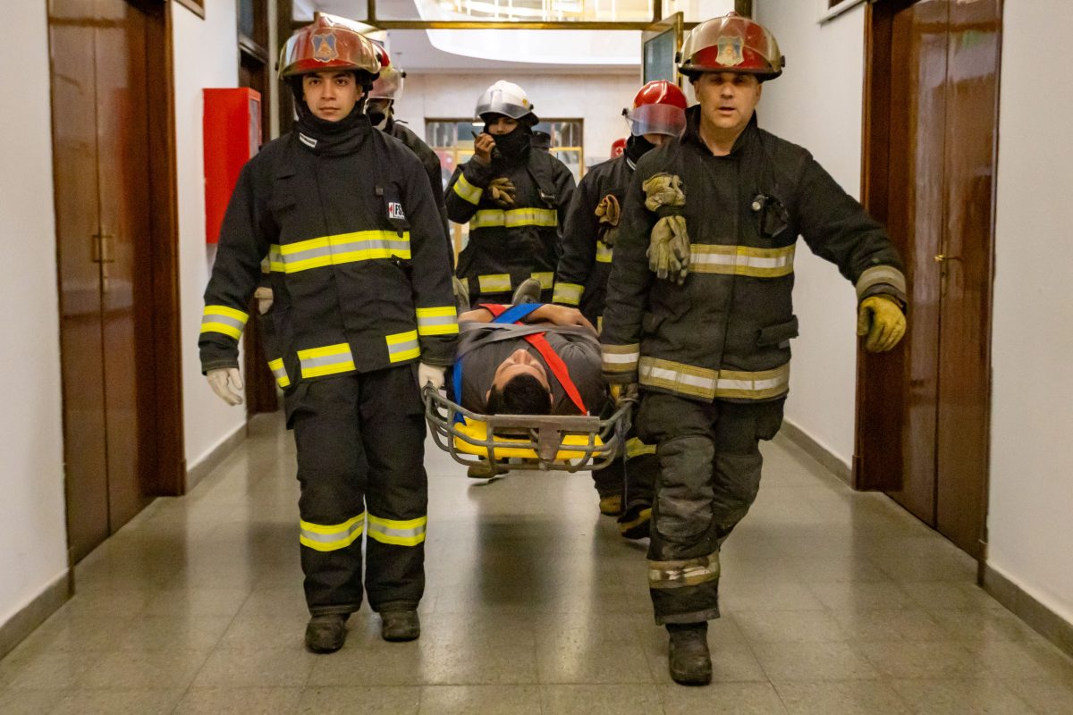 Durante 30 minutos se simuló un sismo de 6 grados en la escala de Richter, con caída de mampostería y evacuación total del edificio. El espacio verde del Barrio Cívico funcionó como punto de encuentro para tareas de asistencia médica y aeroevacuación, con apoyo del helicóptero policial.
