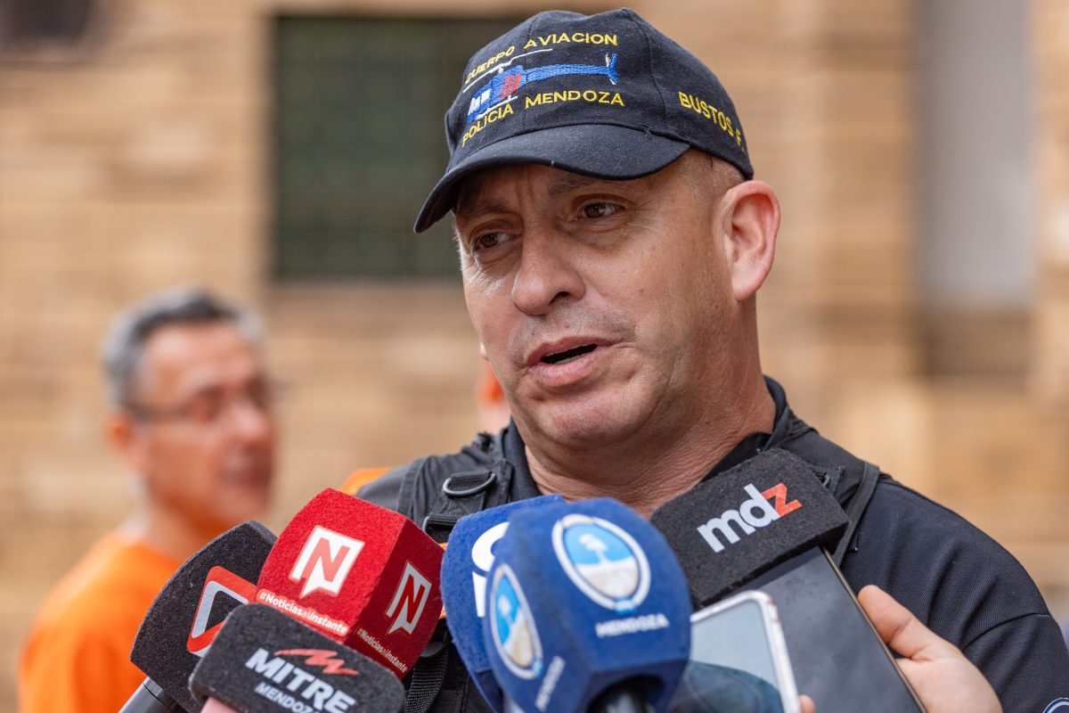 Durante el ejercicio, el helicóptero Halcón 3 de la Policía de Mendoza, en configuración sanitaria, realizó una maniobra de evacuación simulada. El comisario Carlos Bustos, del Cuerpo de Aviación Policial, explicó que “se aseguró la zona, se coordinó el aterrizaje con el aeropuerto y se efectuó el traslado del paciente hasta la aeronave, que voló a la base Cóndor sin inconvenientes.
