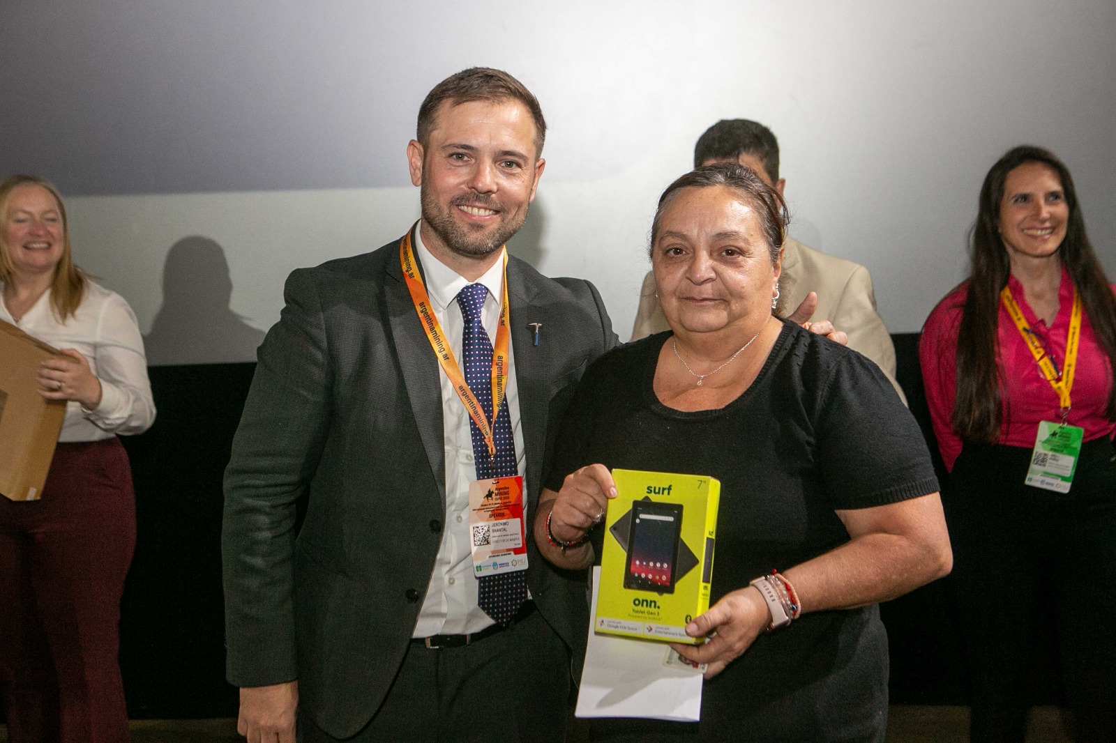 Acto seguido, se entregaron los certificados que validan la actualización académica y pedagógica de los docentes participantes, y el acto culminó con un sorteo entre los docentes, cuyos premios consistieron en tablets, mochilas, una notebook donadas por empresas del sector: Argentina Mining Cuyo, Ampere Lithium, Boart Longyear, Fundación Argentina para el Desarrollo y formación Minera, Andean Metals Fund, Arex Minig, Sindicato Jerárquico Minero, ACSA Mining y libros de autoría del Geólogo Eddy Lavandaio, Elementos de Geología, Mineralogía y Materias Primas Minerales y Los secretos de la geología.