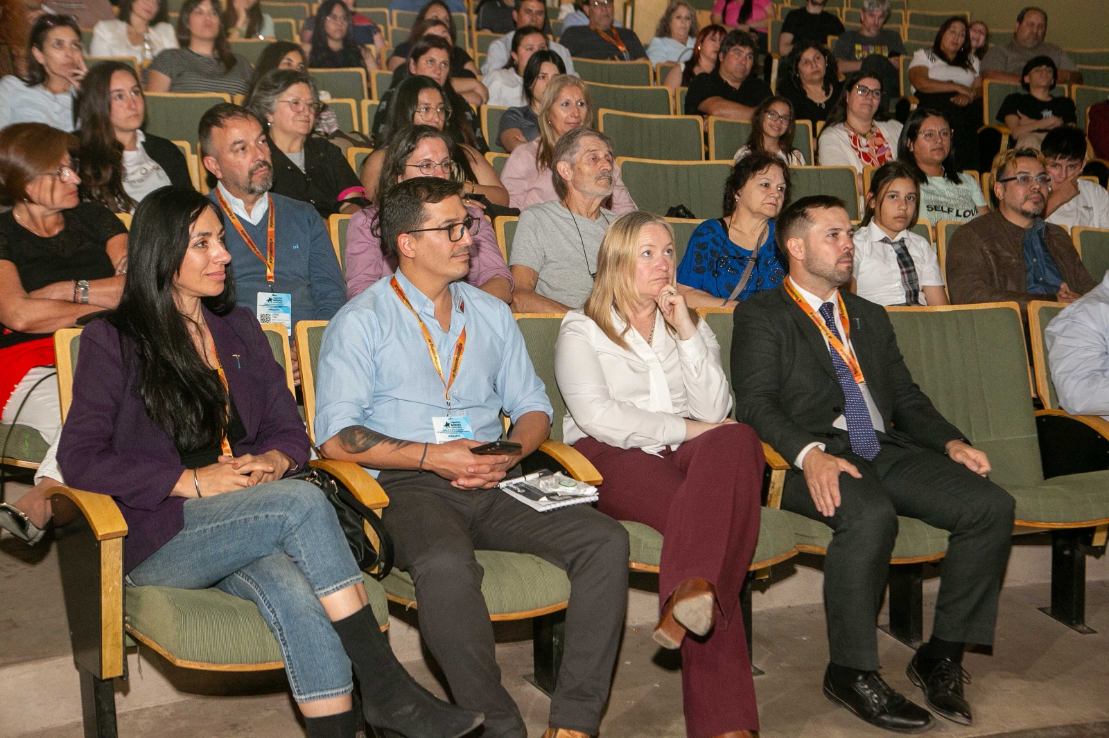En el cine Universidad de la Nave UNCuyo estuvieron presentes la directora de Educación Superior de la DGE, Mariela Ramos; el coordinador de Educación Superior, José Reche; el director de Minería de Mendoza, Jerónimo Shantal; la subdirectora de la Dirección de Minería y coordinadora general del curso: Jimena Ponce; capacitadores y participantes de la propuesta formativa; docentes y familiares.