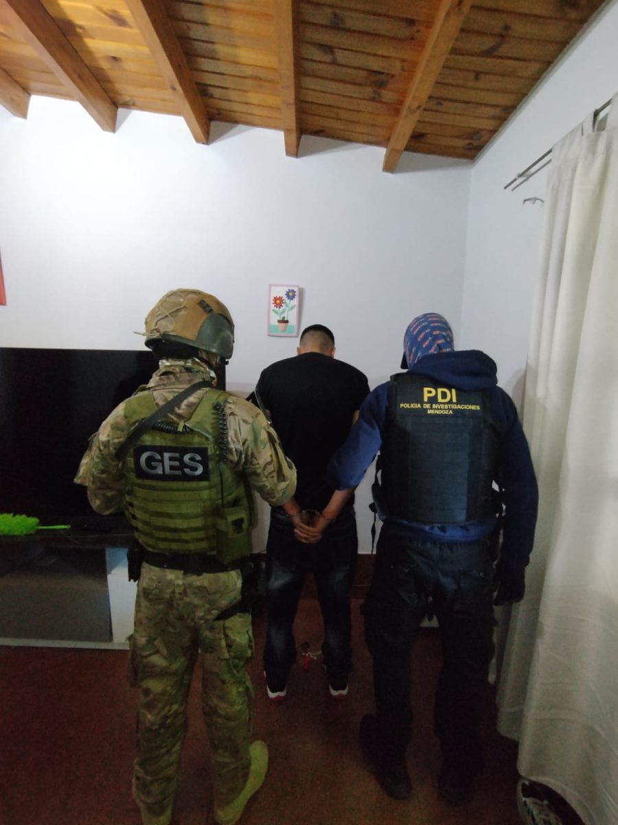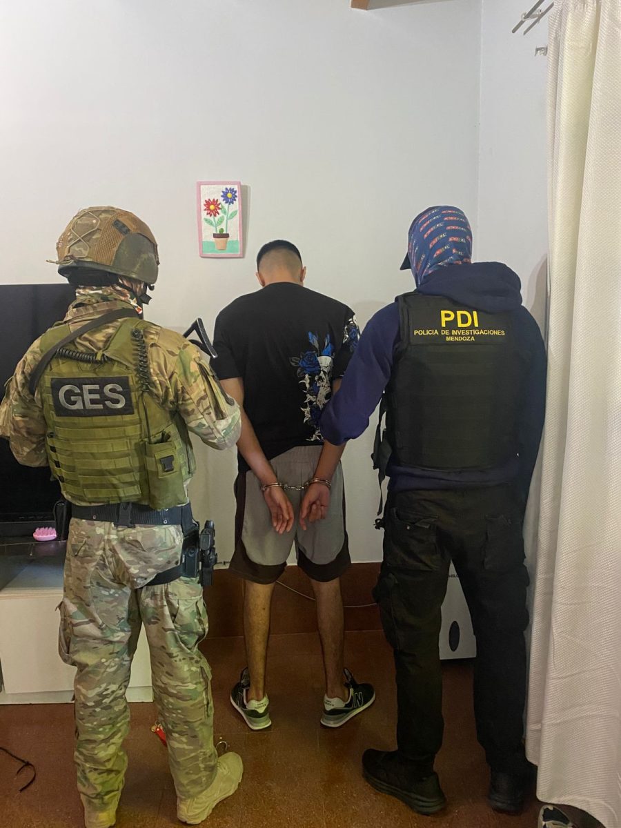 Las medidas judiciales se realizaron en tres domicilios: uno en el barrio Jardín Victoria de Godoy Cruz y otros dos en las calles Sarmiento y Lencinas, en Las Heras. En este último punto, el operativo arrojó resultado positivo con la captura de los sospechosos, quienes tenían pedido de captura activa por un hecho ocurrido el 9 de junio, cuando un joven fue baleado en Guaymallén.