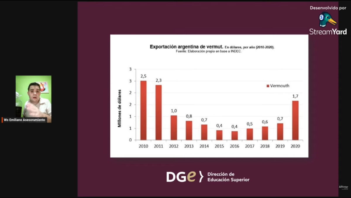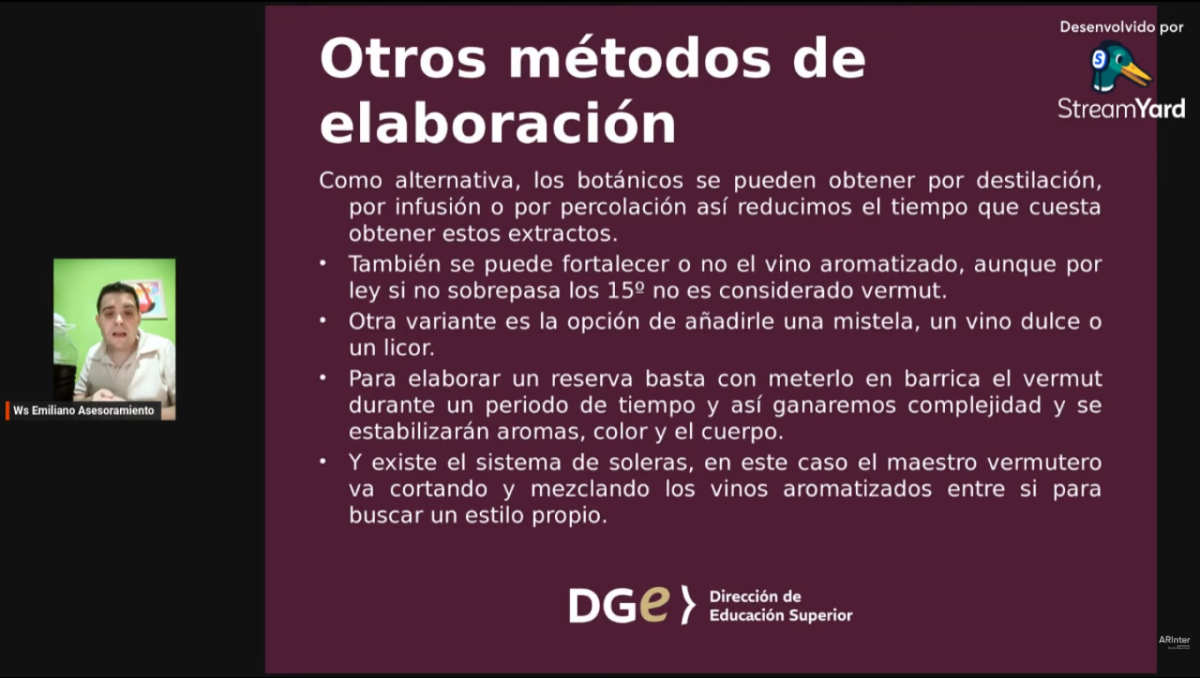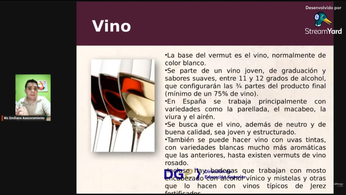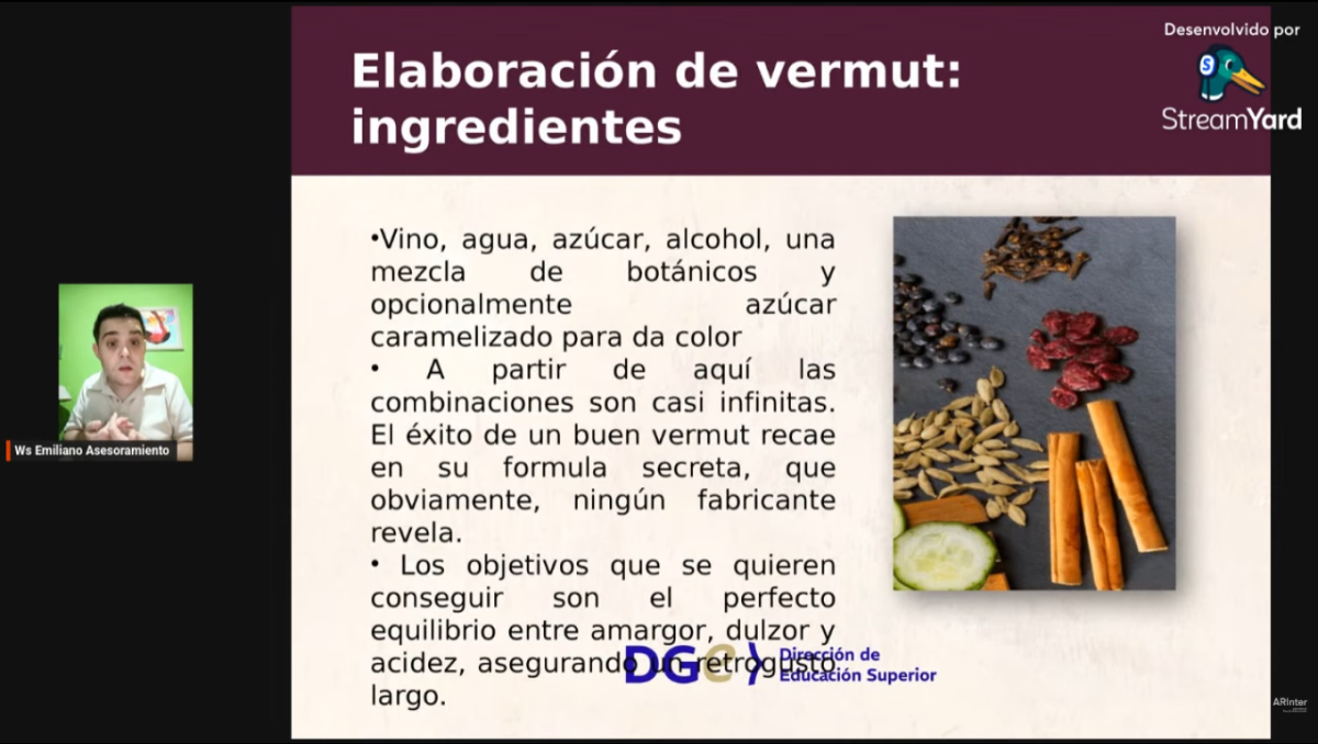 La actividad se desarrolló a través del primer webinar internacional “Vermut: un aperitivo con identidad”, una propuesta formativa destinada a estudiantes, docentes y profesionales del sector vitivinícola y gastronómico interesados en profundizar conocimientos técnicos sobre la elaboración de vermut y las tendencias actuales del mercado.