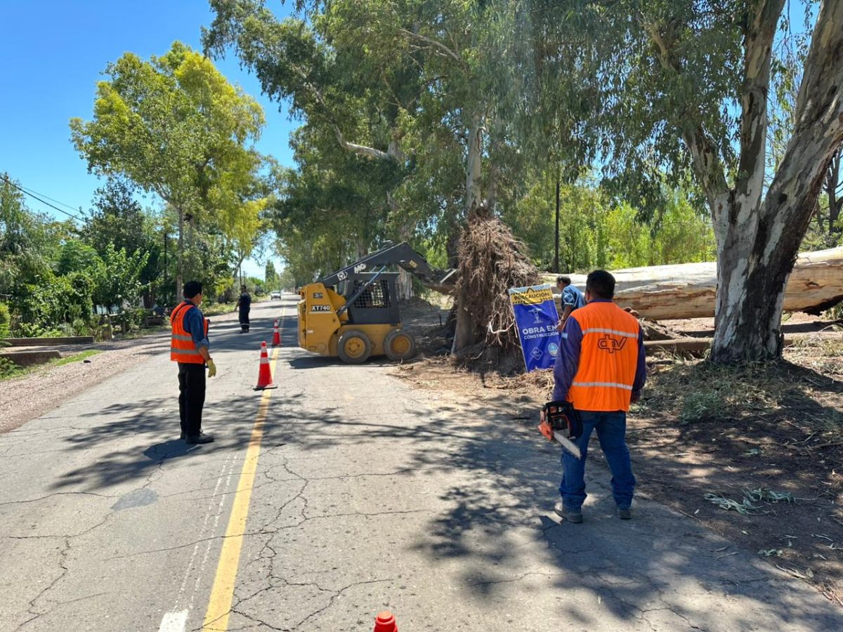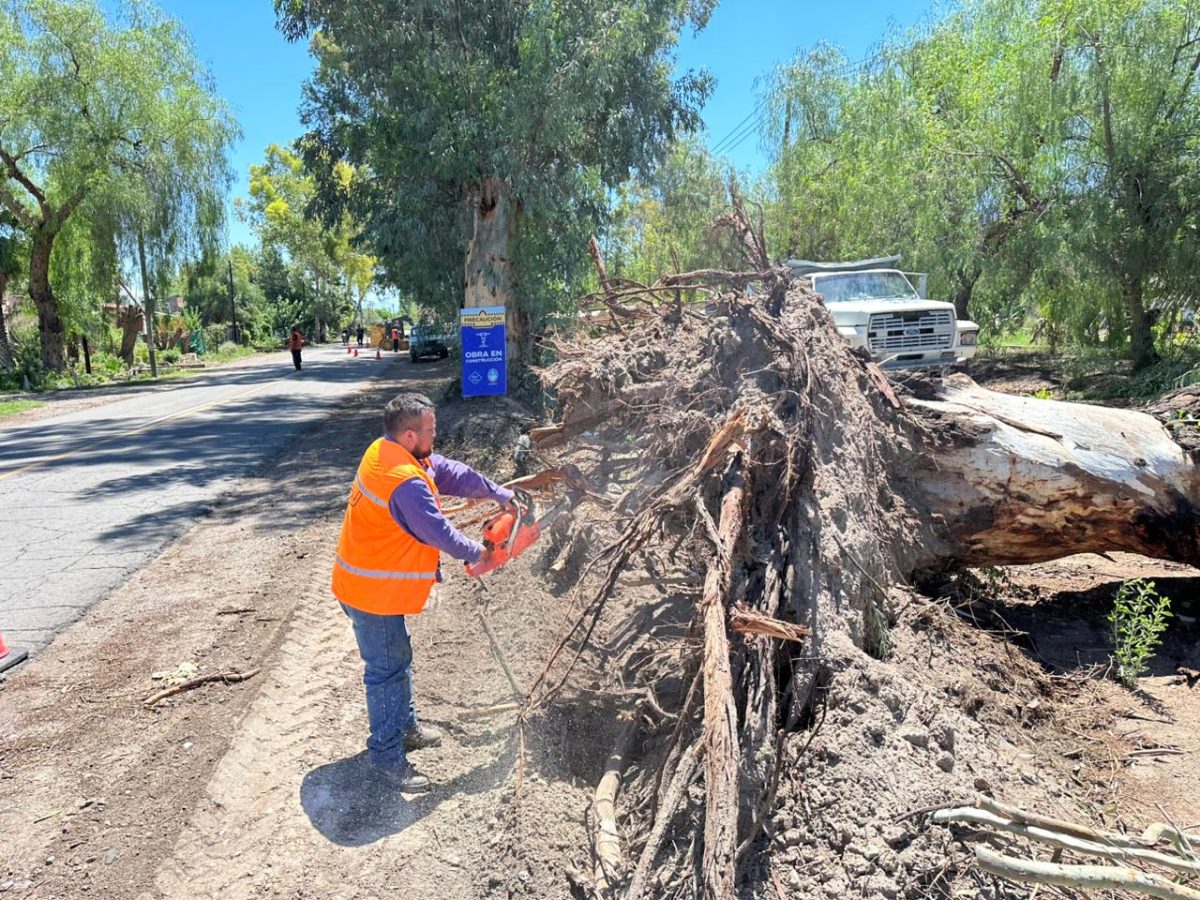 Vialidad Mendoza ya está trozando troncos y rellenando los huecos que dejaron los árboles caídos en las banquinas.