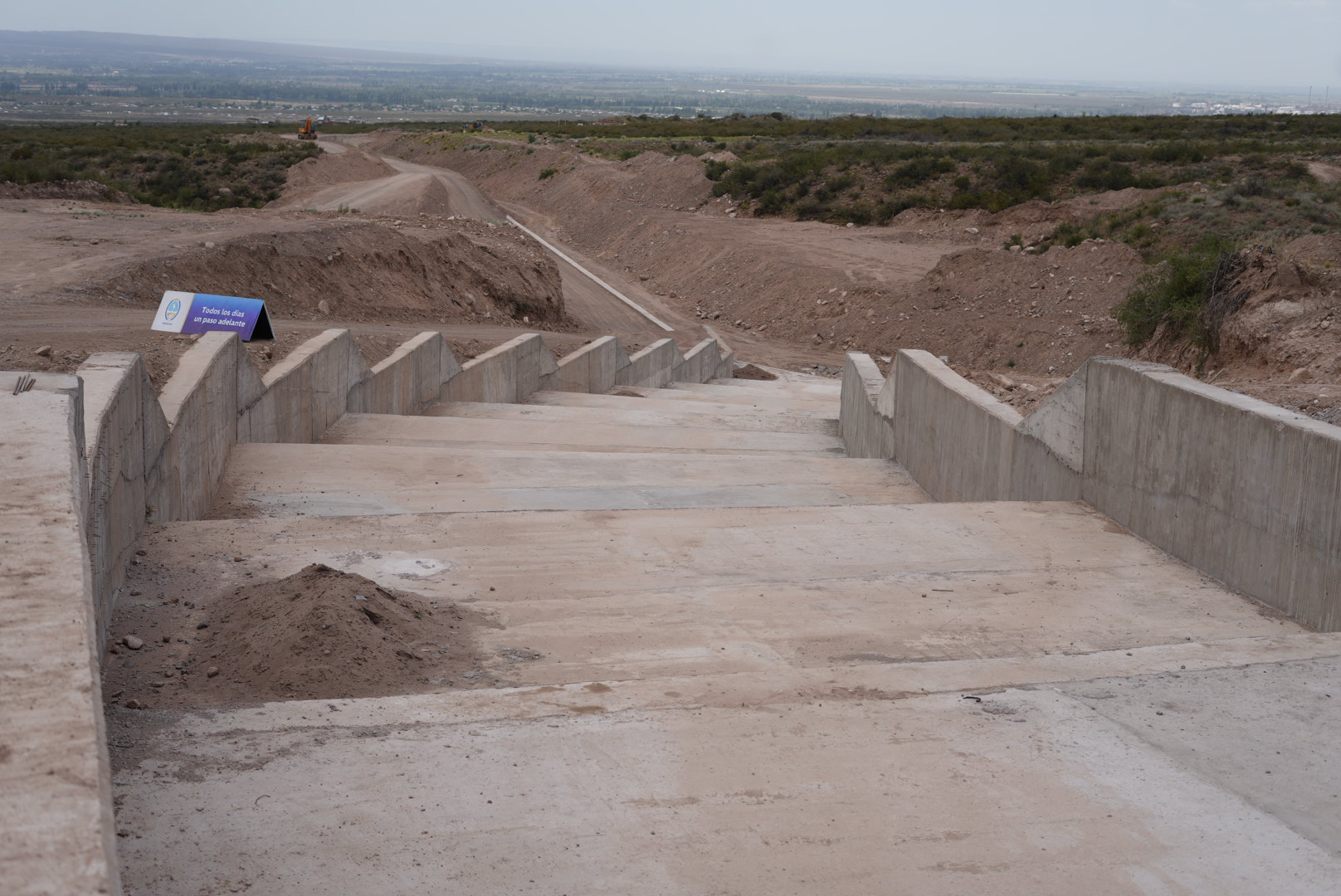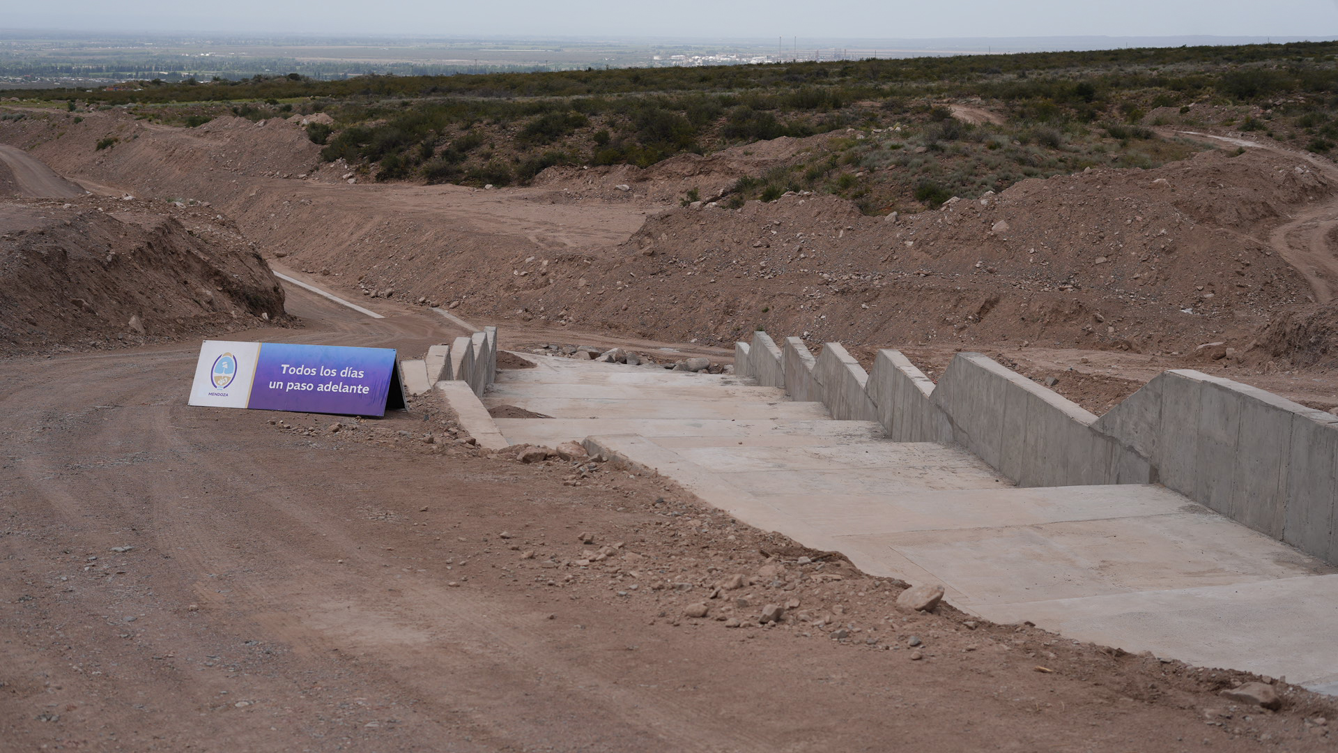 También destacó la relación entre esta obra y los tramos dos y tres de la Ruta 82, así como su impacto en los barrios de la zona. Indicó que se trata de un área aluvional del piedemonte que ha crecido en población e intervenciones urbanas y recordó que, al ubicarse aguas arriba de la Ruta 82, esta infraestructura permite amortiguar el impacto de cualquier crecida, ya que los colectores encauzan el agua y disminuyen su fuerza.