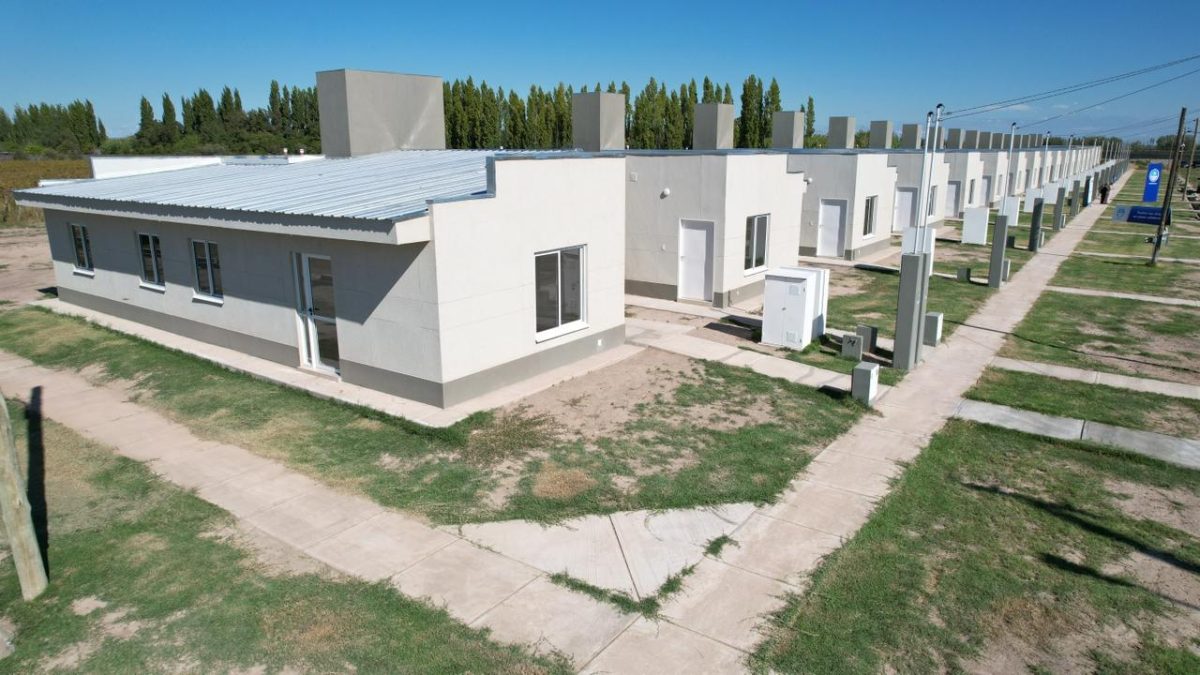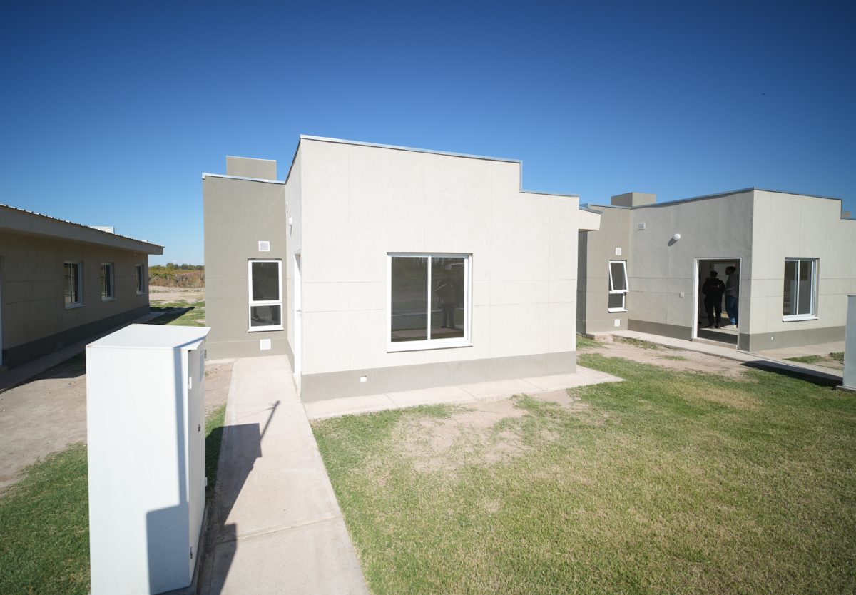 Estas soluciones habitacionales del barrio Loteo Estrada forman parte del programa IPV Mi Casa. En total, se entregaron 20 viviendas, construidas mediante un sistema industrializado, con una superficie promedio cubierta de 87 metros cuadrados.