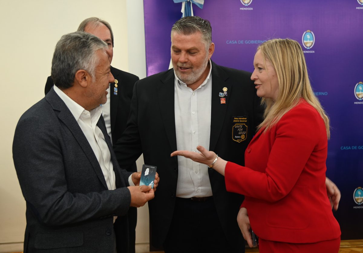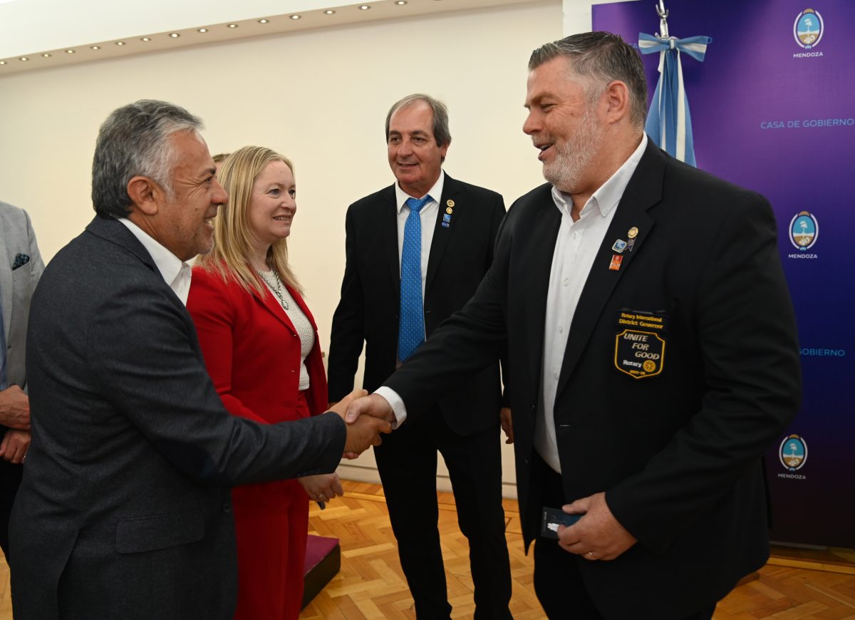 El Gobernador Alfredo Cornejo recibió en el cuarto piso de la Casa de Gobierno a miembros del Rotary Club. En el Salón Patricias Mendocinas se procedió a la firma de un acta compromiso entre el Gobierno de Mendoza, la Municipalidad de Luján de Cuyo y el Distrito 4851 de Rotary International, junto a la Asociación Civil Casa de la Amistad-Rotary Club Luján de Cuyo.