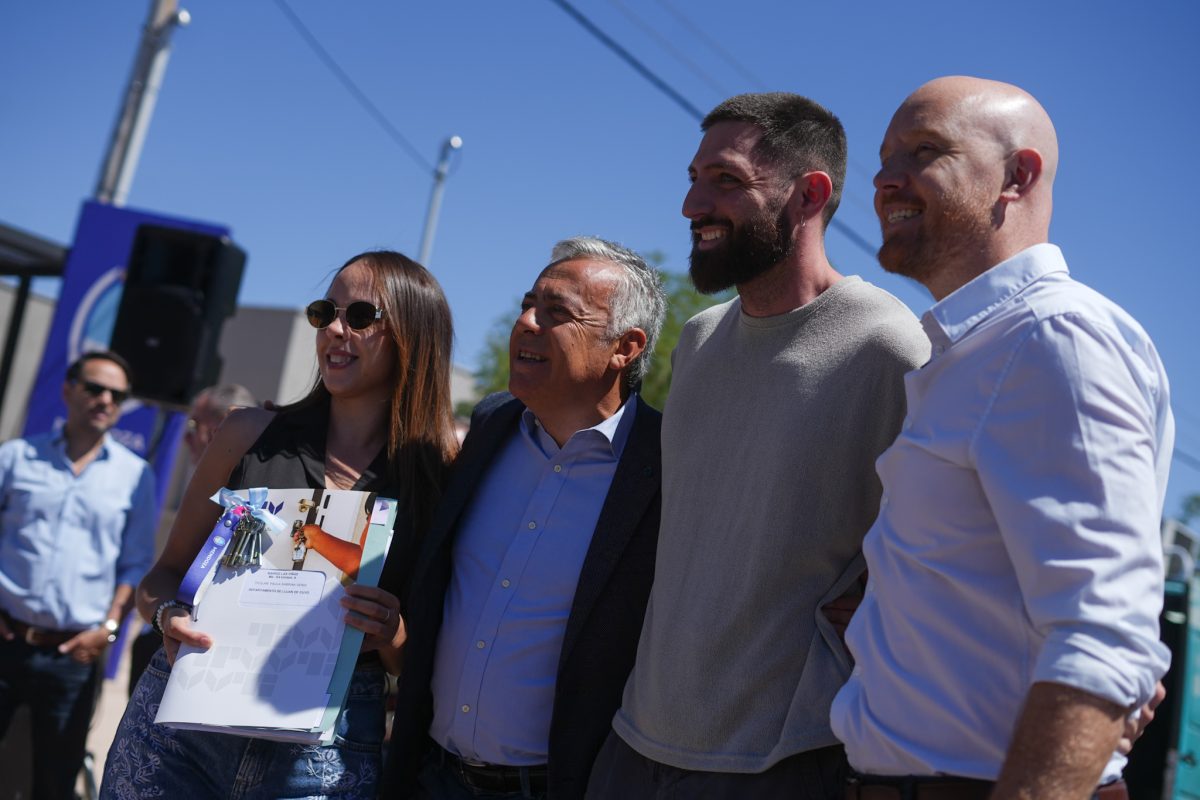 El Gobernador resaltó que todas las semanas se realizan entregas de nuevas viviendas para adjudicatarios de toda la provincia. “Es un círculo virtuoso: cuanto más vivienda hacemos, más trabajo se genera. La construcción es trabajo genuino y digno. Mientras yo esté al frente del Gobierno provincial, no vamos a aflojar con la vivienda. Todas las semanas estamos entregando casas en distintos departamentos y no vamos a dejar de hacerlo”, subrayó.