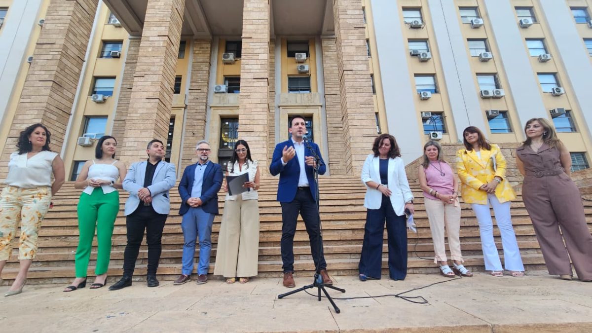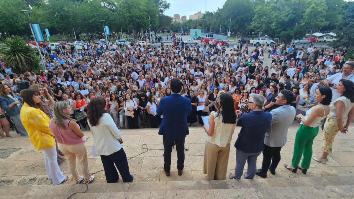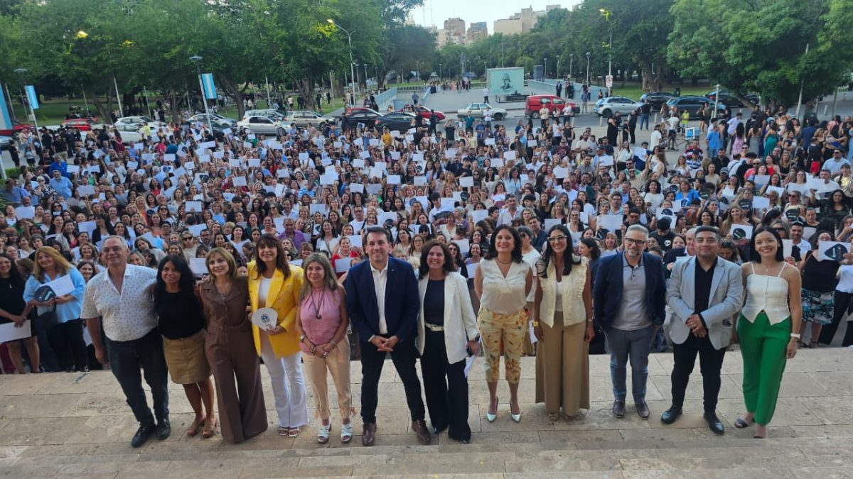 El ministro de Educación, Cultura, Infancias y DGE, Tadeo García Zalazar, junto a las máxima autoridades educativas de la Provincia, recibieron este jueves en la explanada de Casa de Gobierno a los docentes que aprobaron el concurso de Jerarquía Directiva 2025 con el fin de entregarles el certificado de aprobación de este importante movimiento dentro del sistema educativo.