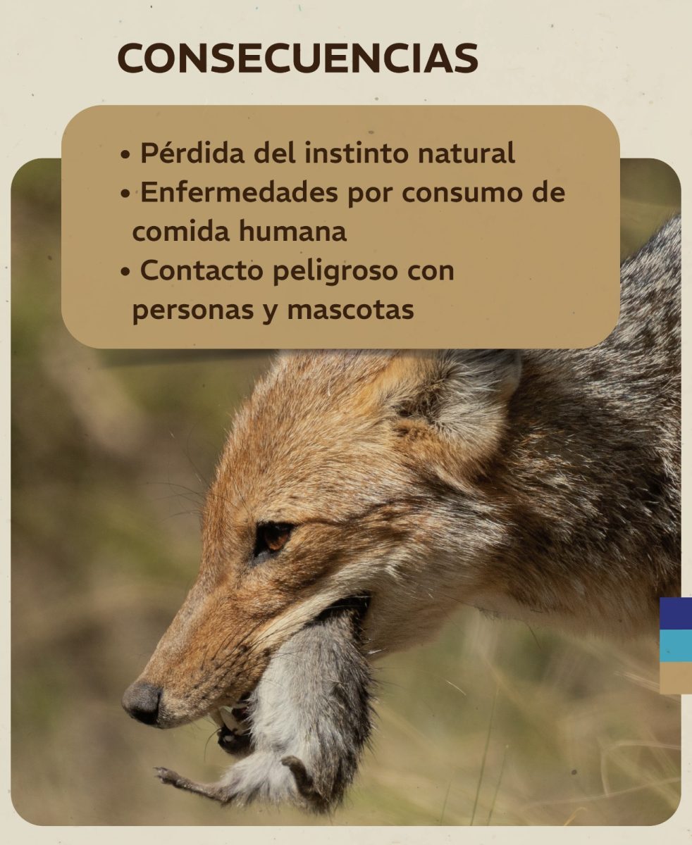 A esto se suman los problemas de salud. La comida de consumo humano no es adecuada para la dieta de la fauna silvestre y puede generar desequilibrios nutricionales, enfermedades gastrointestinales graves y otras patologías potencialmente mortales. Además, el contacto cercano favorece la transmisión de enfermedades zoonóticas entre fauna silvestre, animales de compañía y personas, y puede derivar en conductas agresivas cuando el alimento deja de estar disponible.