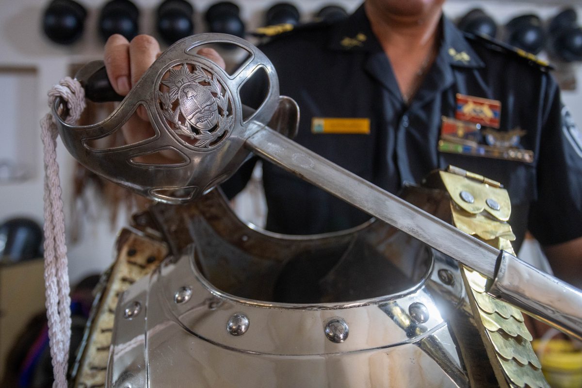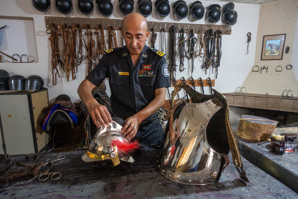 Las corazas que utiliza esta sección fueron traídas desde Francia en 1907 y forman parte del patrimonio histórico de la fuerza. A eso, se suma el cuidado de sables modelo escudo, de 1890, idénticos a los utilizados por los Granaderos a Caballo y los Infernales. “Son sables históricos, los mismos que se pueden ver en museos. Nosotros tenemos la responsabilidad de usarlos, cuidarlos y mantenerlos”, señala.
