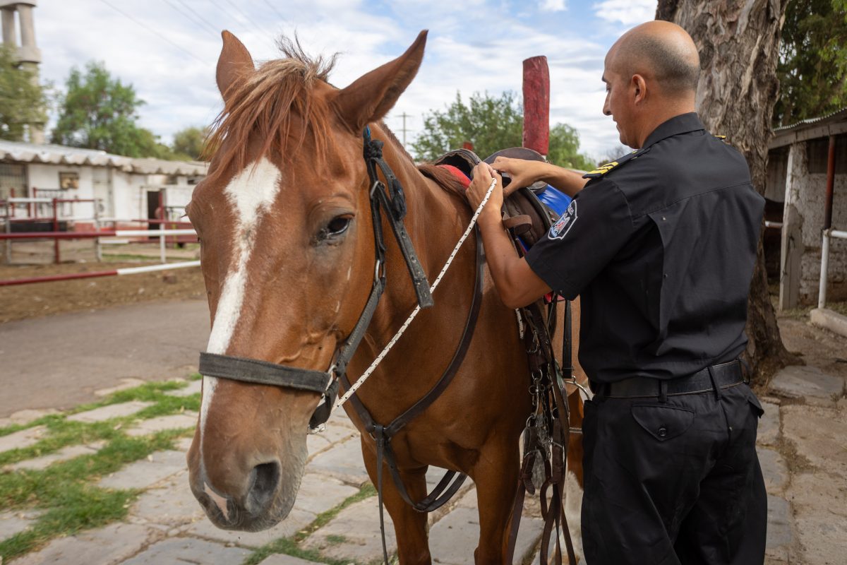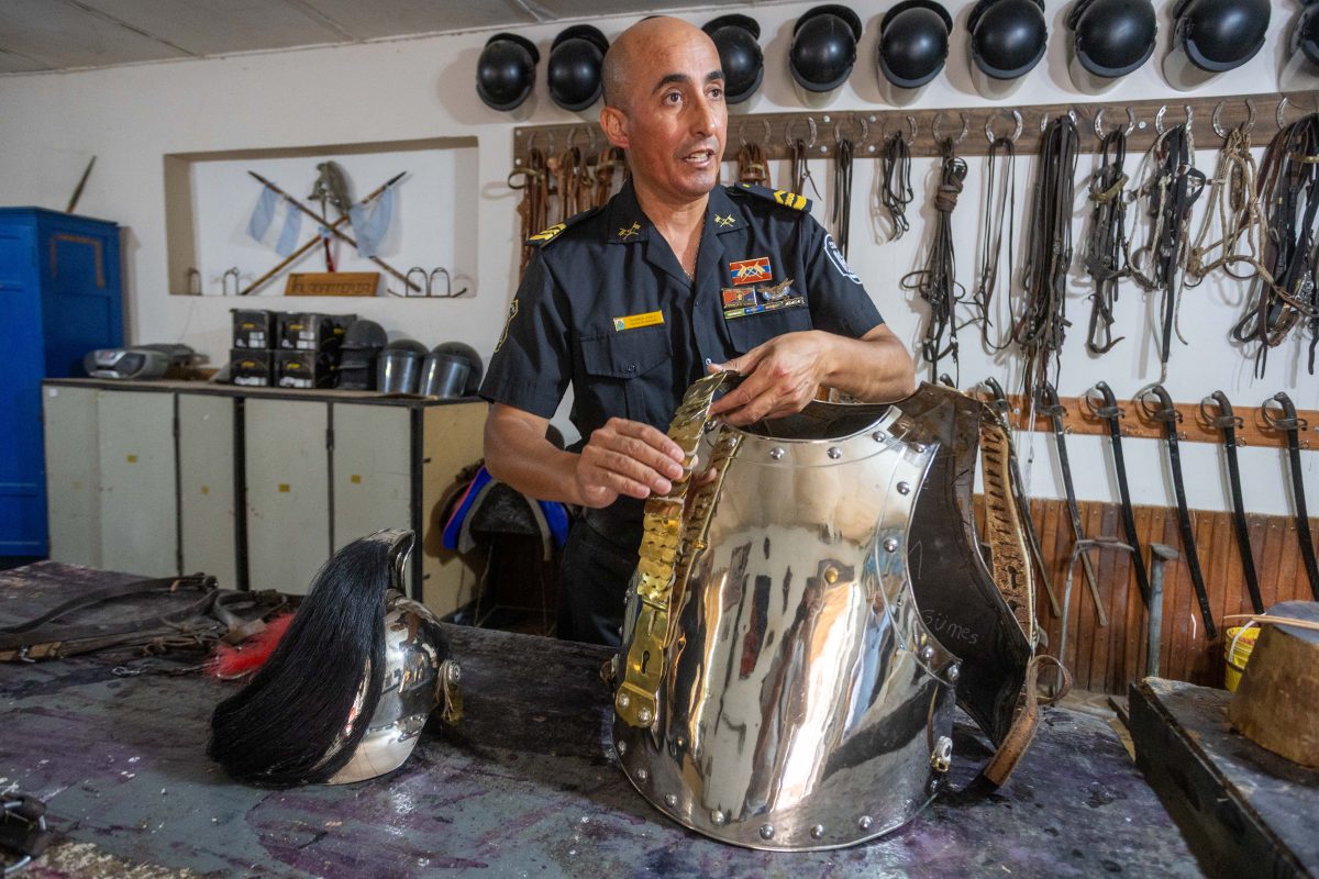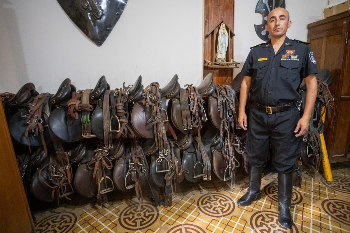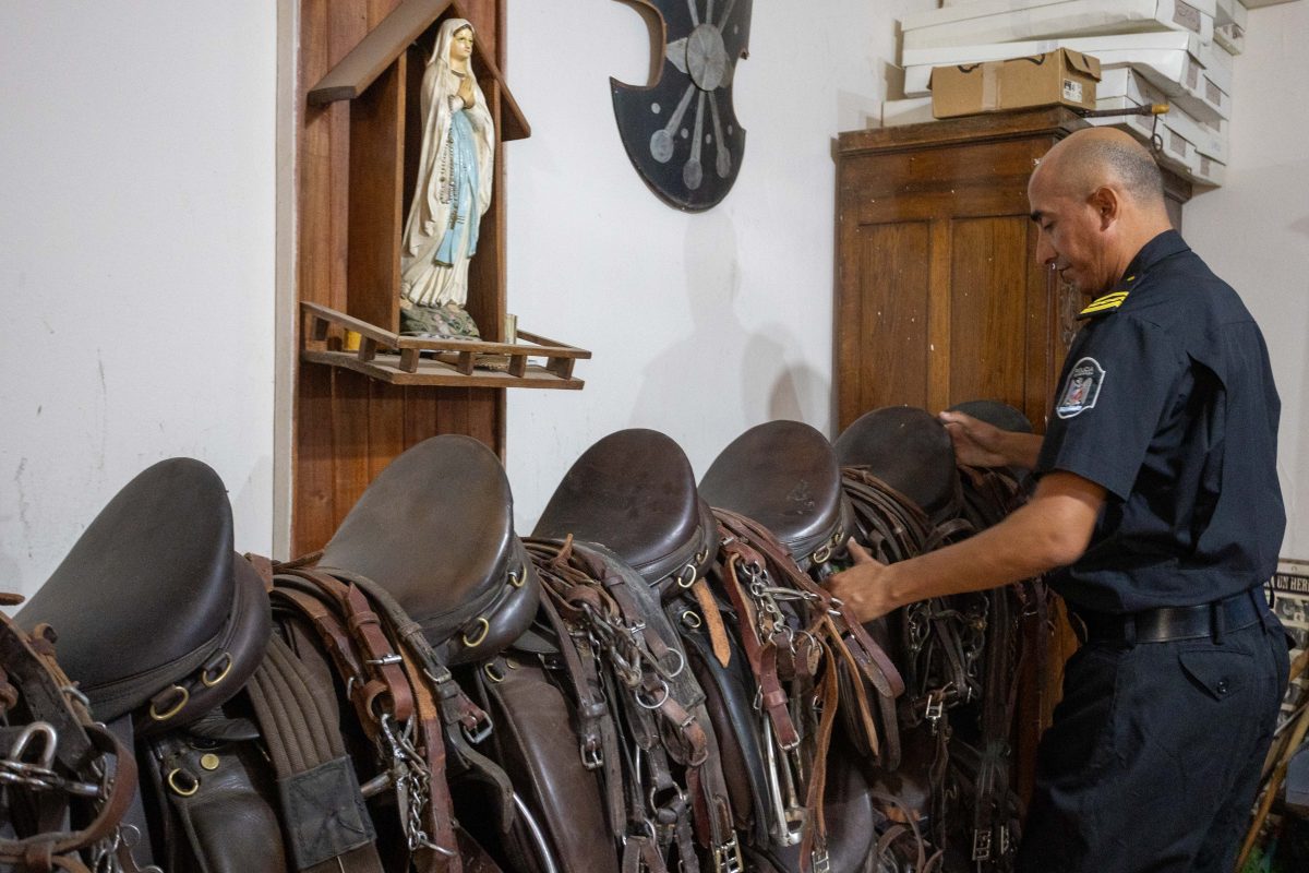 Además, la sección cumple una función formativa. Los efectivos que ingresan por traslado al cuerpo reciben instrucción sobre el uso, cuidado y mantenimiento del equipo, con el objetivo de prolongar su vida útil. Lo mismo ocurre con los cursos nacionales que dicta la Policía Montada de Mendoza, a los que asisten fuerzas de distintas provincias como Santa Fe, Río Negro, San Juan, Catamarca y Chaco. “También soy parte del plantel de instructores”, agrega.