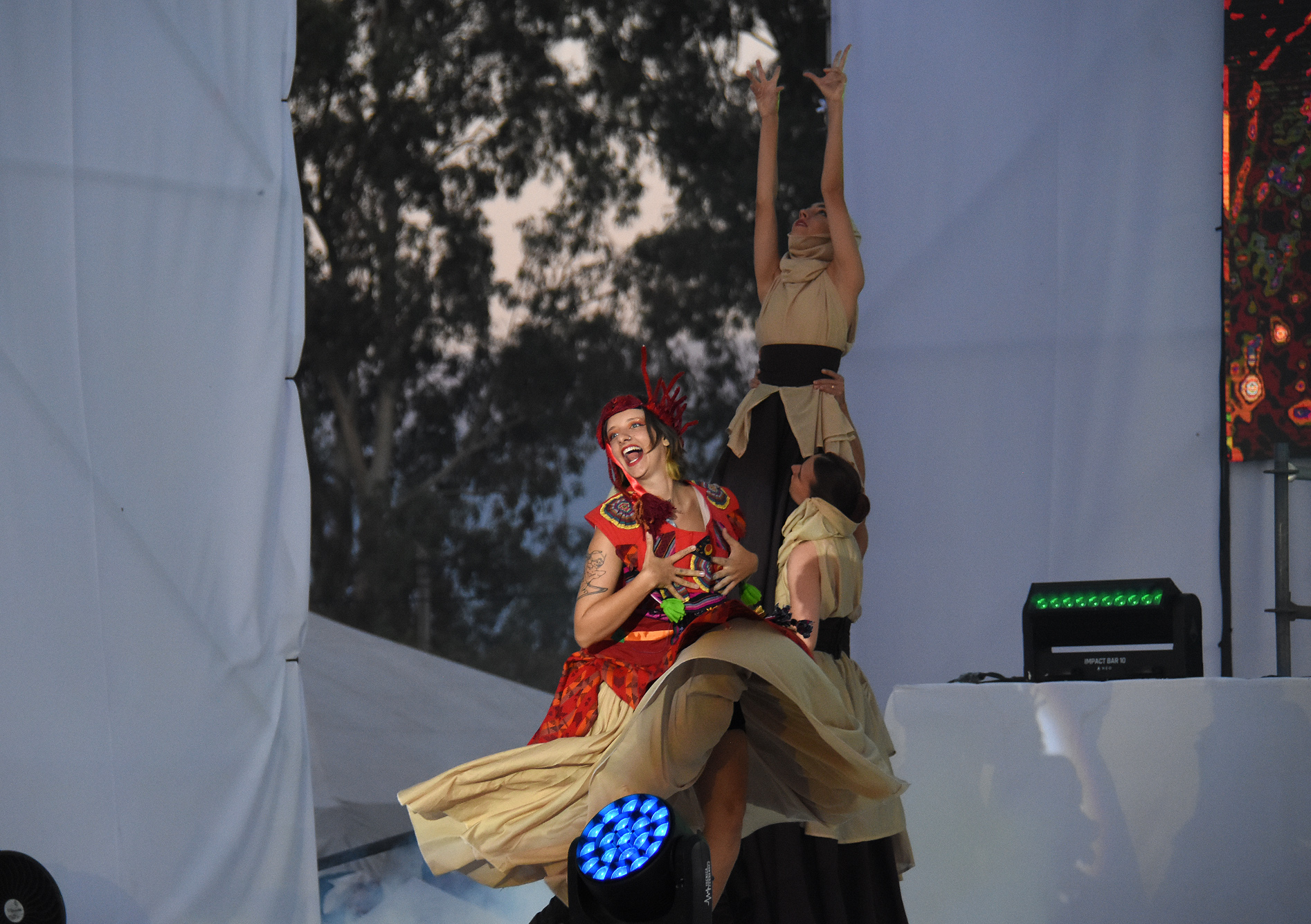 Luego fue el turno de La Paz, que presentó De La Paz al mundo, con un gran espectáculo del grupo Raíz Huarpe. La propuesta incluyó la participación del Ballet Estable Municipal, dependiente de la Dirección de Cultura, y la presencia de la reina departamental Ana Laura Roza, quien también se sumó al baile.