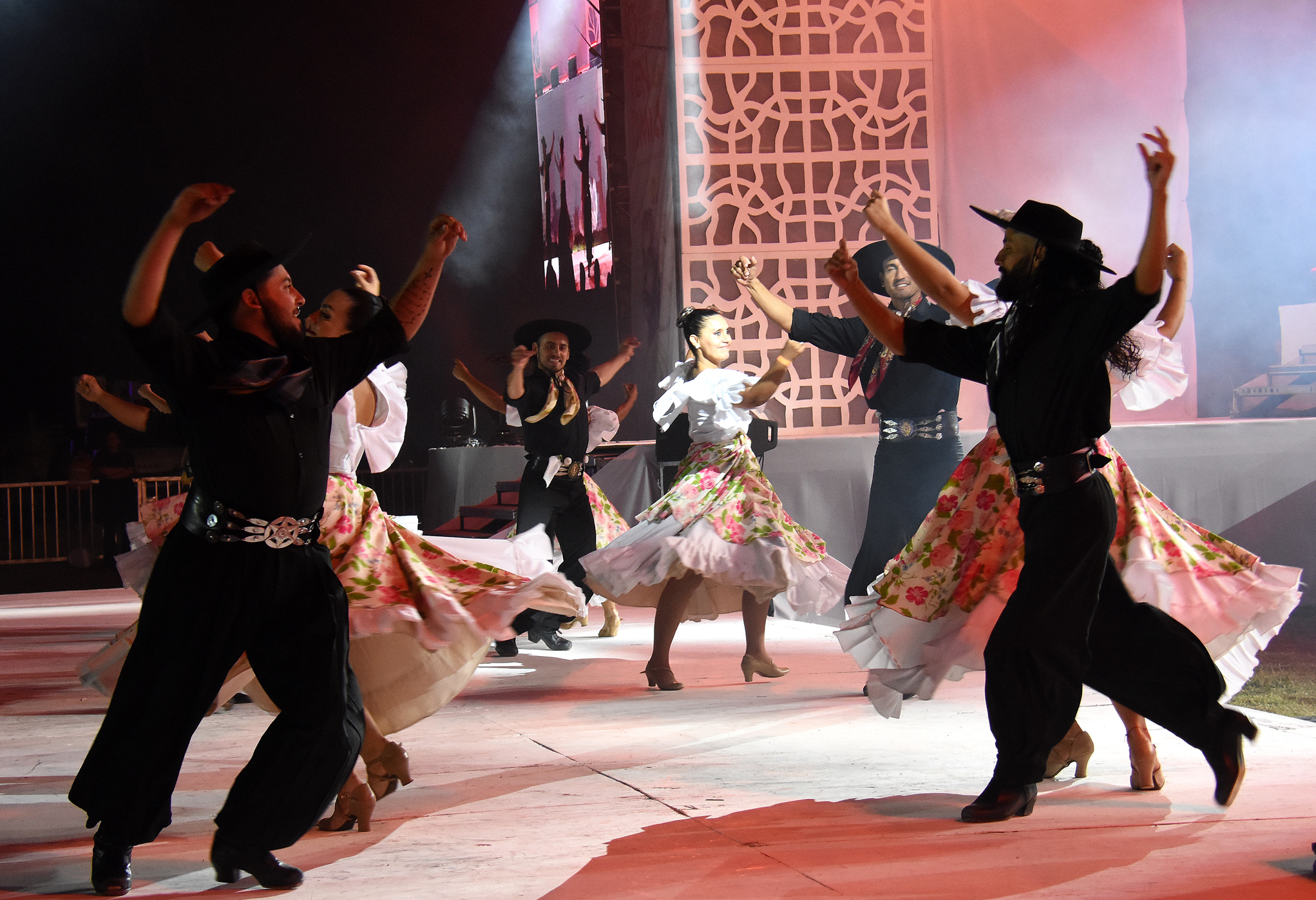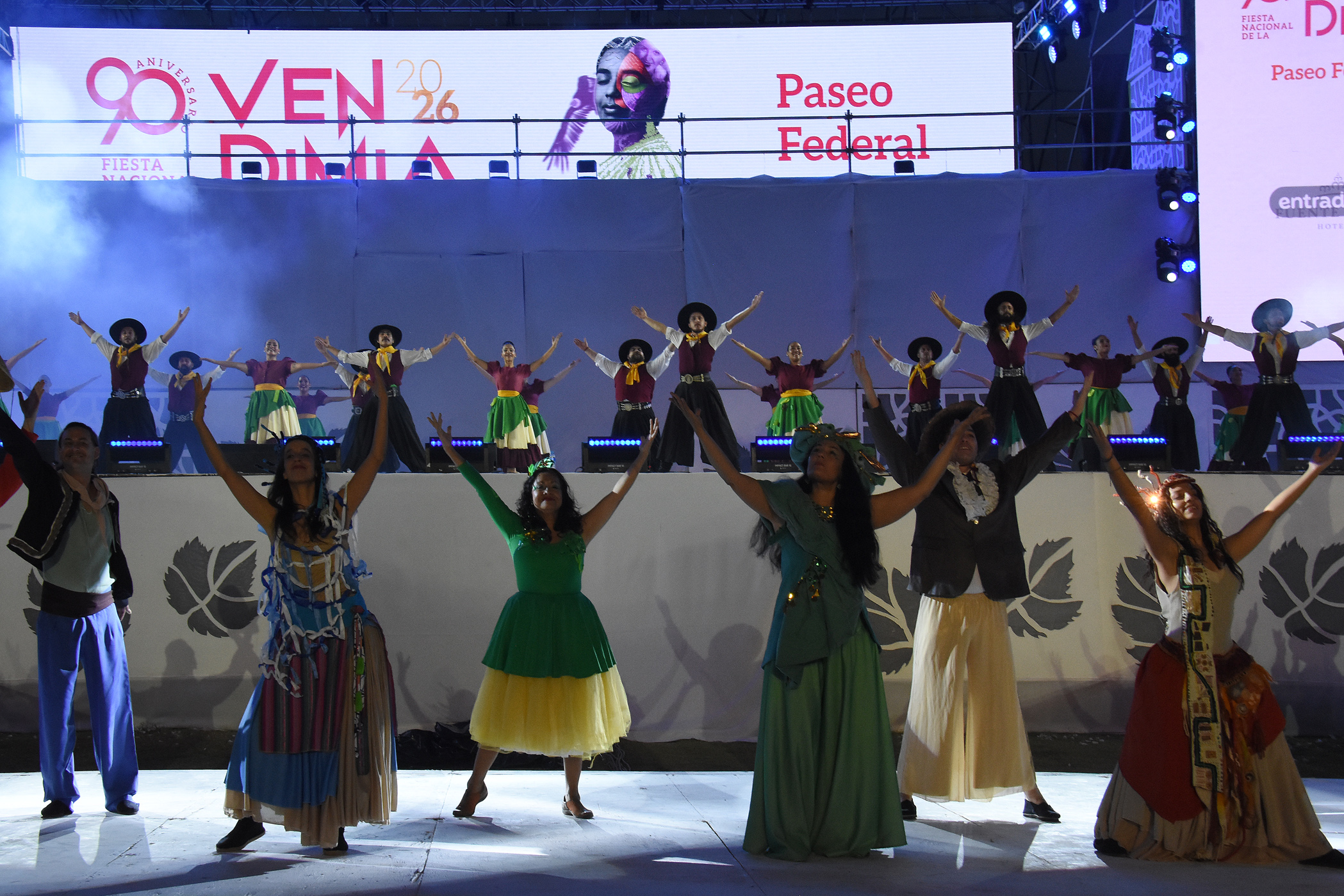 La velada comenzó con el Ballet Oficial, integrado por artistas surgidos de un casting público, abierto y federal. Este año, la dirección coreográfica general está a cargo de Néstor Alberto Giménez Celi.