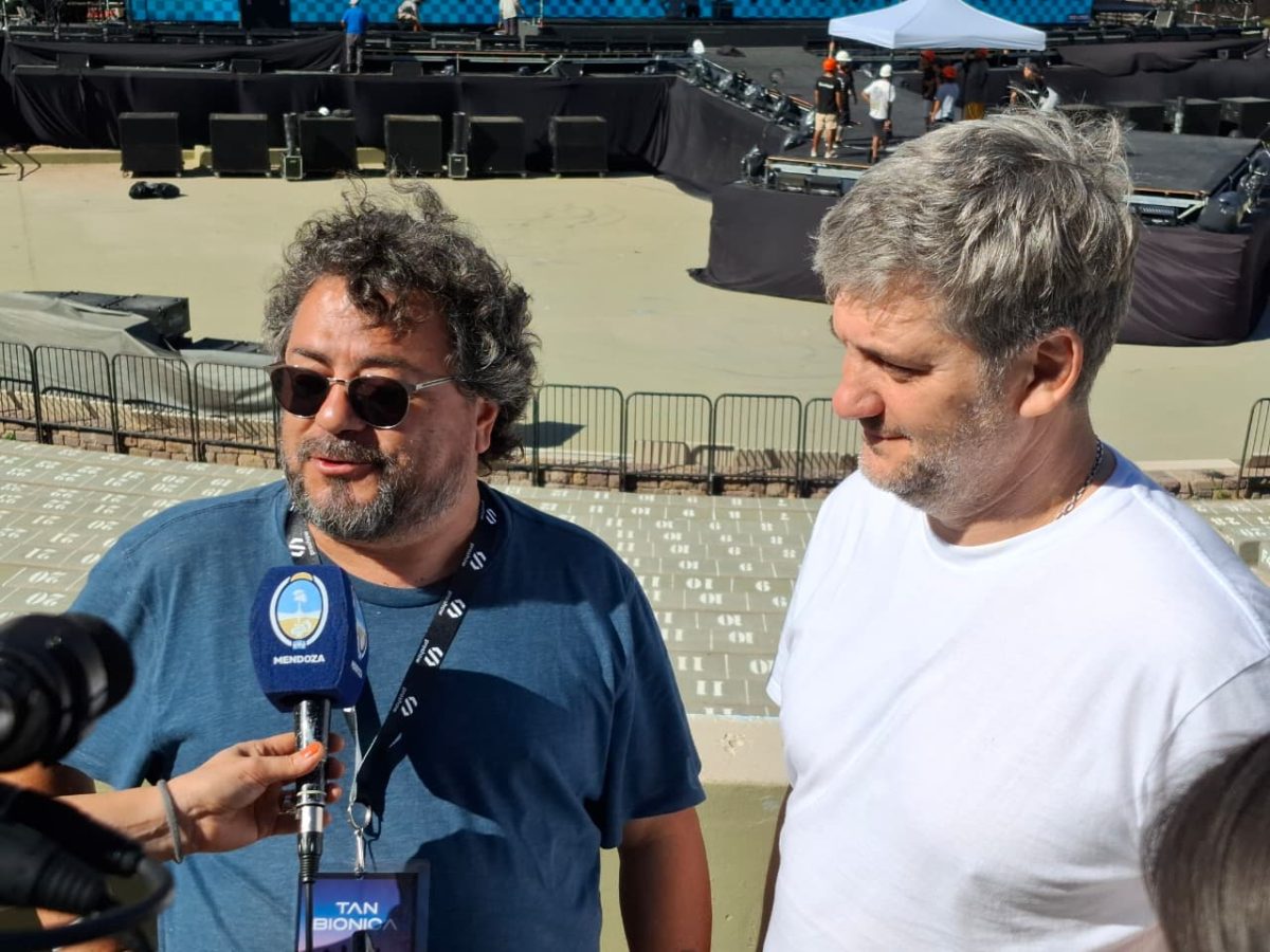 Además, Óscar Sayavedra, socio de Sayaland Producciones, y Diego Arancibia, de MTS, destacaron el trabajo conjunto entre productoras locales y nacionales en la realización del espectáculo. En ese sentido, valoraron especialmente la dinámica de trabajo lograda: “Es un honor poder trabajar con una agencia tan grande, con tanta experiencia, pero que no invade, que permite que los equipos mendocinos lleven adelante la producción. Es la primera vez que tenemos socios porteños con una producción cien por ciento mendocina, y eso es una maravilla”. Respecto al escenario elegido, subrayaron el potencial del Teatro Griego: “Es una joya provincial y nacional. La decisión de empezar a utilizarlo para producciones, más allá de la Vendimia, nos inspiró mucho para avanzar con este tipo de propuestas”. En cuanto a la producción técnica, explicaron que el evento combina equipamiento local con requerimientos propios de la banda: “El grueso de lo que se está utilizando es mendocino. Hay elementos específicos que la banda traslada a cada show, pero la mayor parte del despliegue técnico y humano es local”.