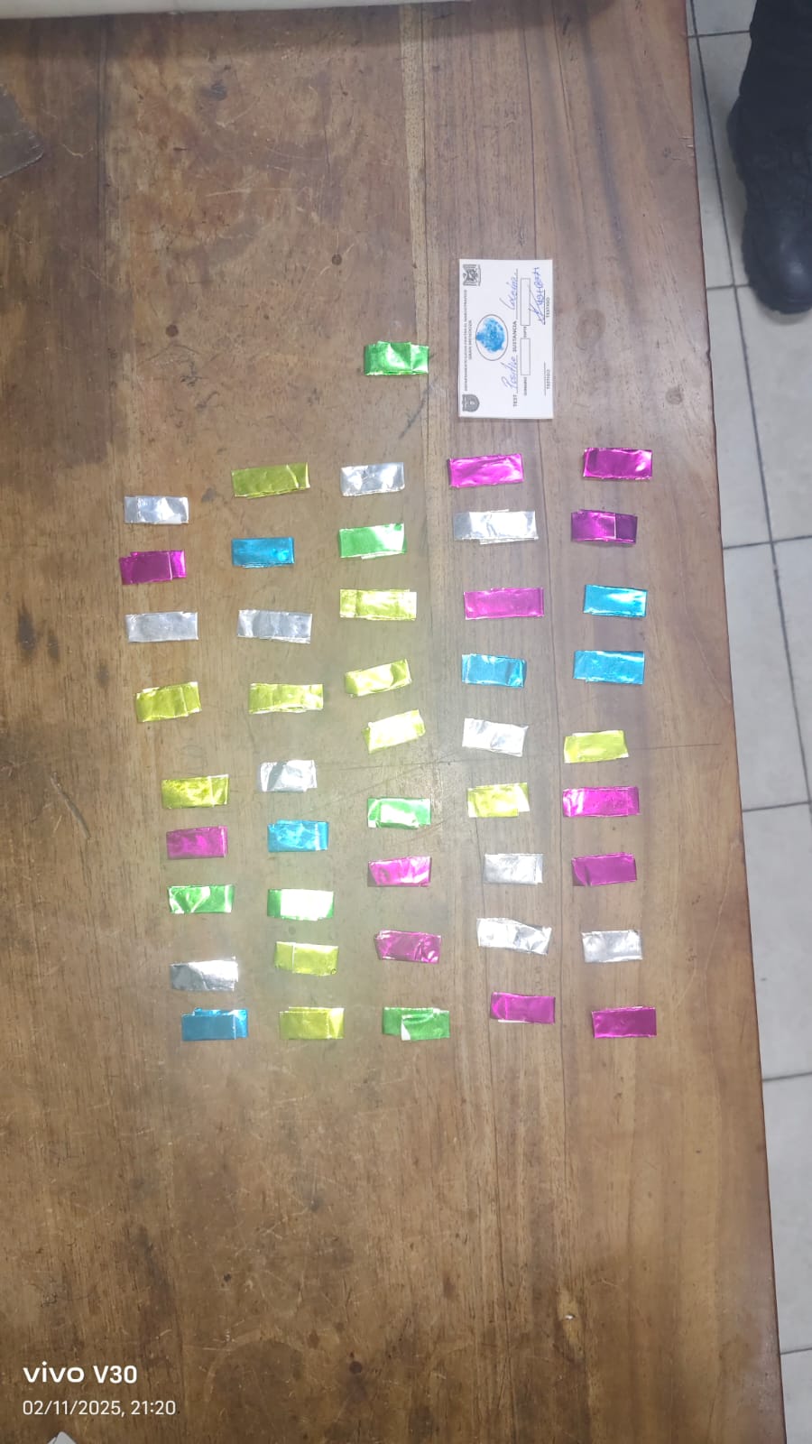 En Maipú, efectivos de la Subcomisaría Lorenz detuvieron a dos jóvenes —un hombre de 17 años y una mujer de 21— en calles Terrada e Isla Laurie. Ambos intentaron ocultarse entre la arboleda al notar la presencia policial. En la mochila que llevaban se hallaron recortes de papel glasé de distintos colores, una media con dinero y documentación personal.