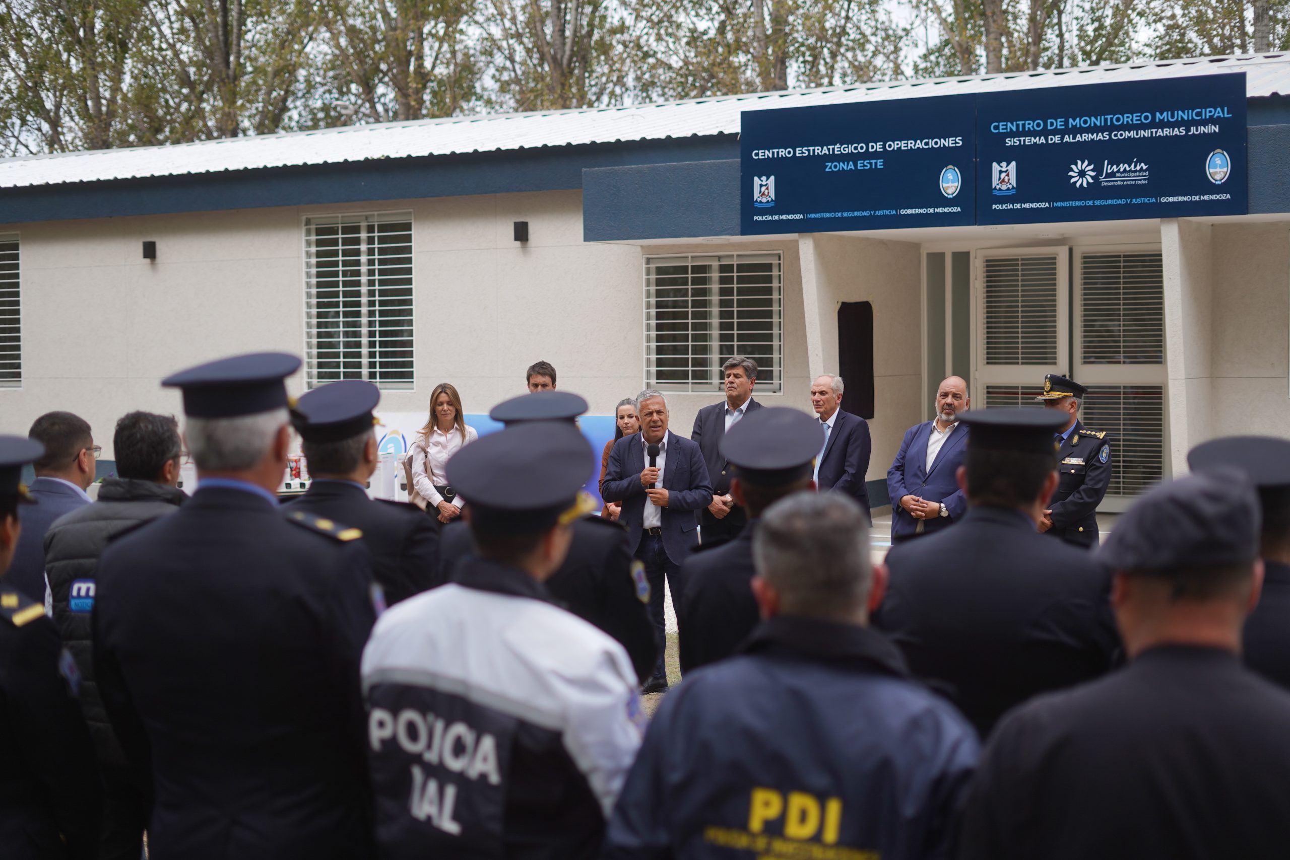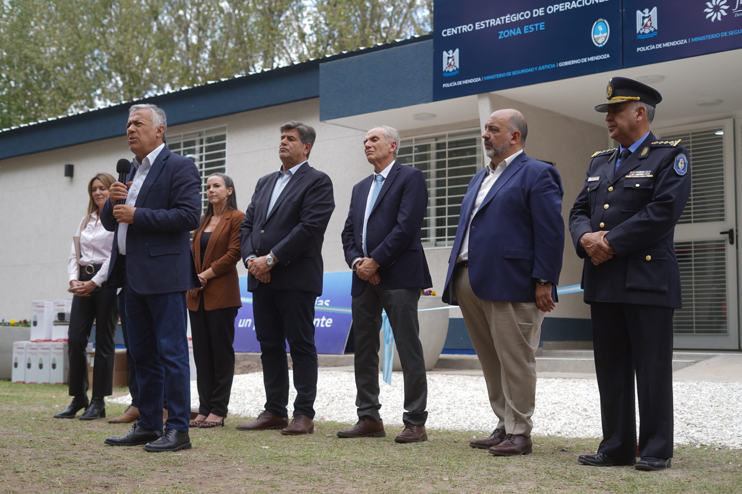 El Gobernador detalló que en el Este ya funcionan 60 comisarías móviles que reportan al CEO. “El mundo enfrenta la inseguridad con tecnología, no con más comisarías en cada esquina. Mendoza avanza en esa dirección: con móviles equipados, con videovigilancia inteligente, con sensores, con inteligencia artificial y con identificación de rostros. Este centro es parte de ese plan integral”, expresó.