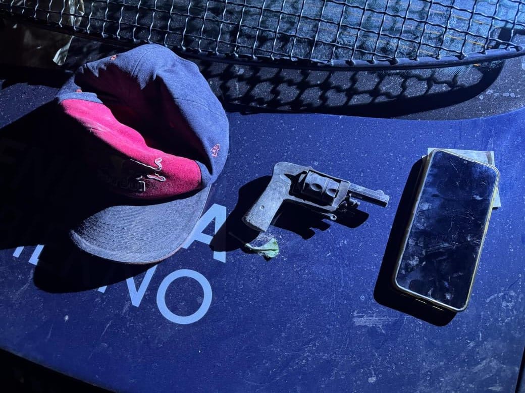 Además, en barrio Belgrano, los efectivos detectaron a dos hombres, uno de ellos armado. Tras una persecución hacia una finca, un hombre de 33 años fue hallado oculto en una cuneta con un revólver gris metálico de cinco alveolos, con cachas de madera, sin inscripciones ni numeración.