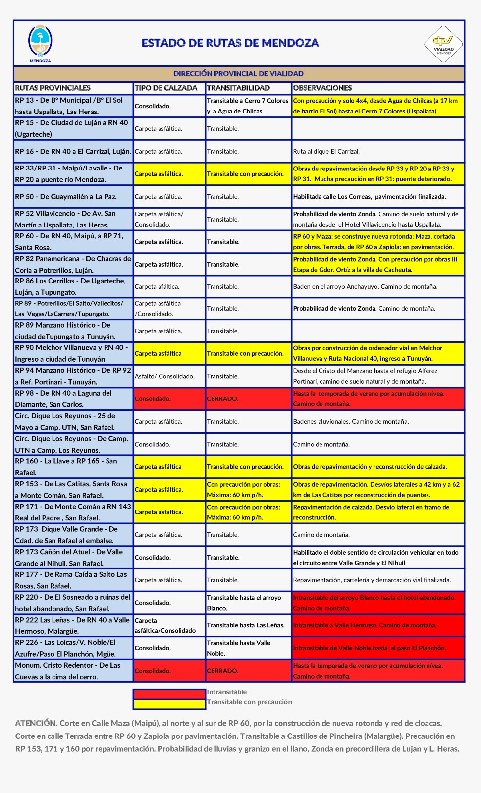 Estado de las rutas en Mendoza 24 octubre 2025 | RUTAS Estado de las rutas nacionales Para conocer el estado de las rutas nacionales en Mendoza, visite el siguiente enlace.