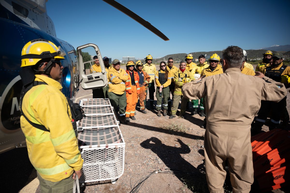 La actividad se desarrolló durante tres jornadas en el Aeroclub La Puntilla y contó con la participación de personal de Defensa Civil, Bomberos de la Policía, Guardaparques —incluyendo equipos de la Reserva Villavicencio—, instructores del Plan Provincial Manejo del Fuego y del Servicio Nacional de Manejo del Fuego (SNMF). Además, se sumaron recursos aéreos como el helicóptero de la Policía de Mendoza, que permitió realizar prácticas operativas en condiciones reales.