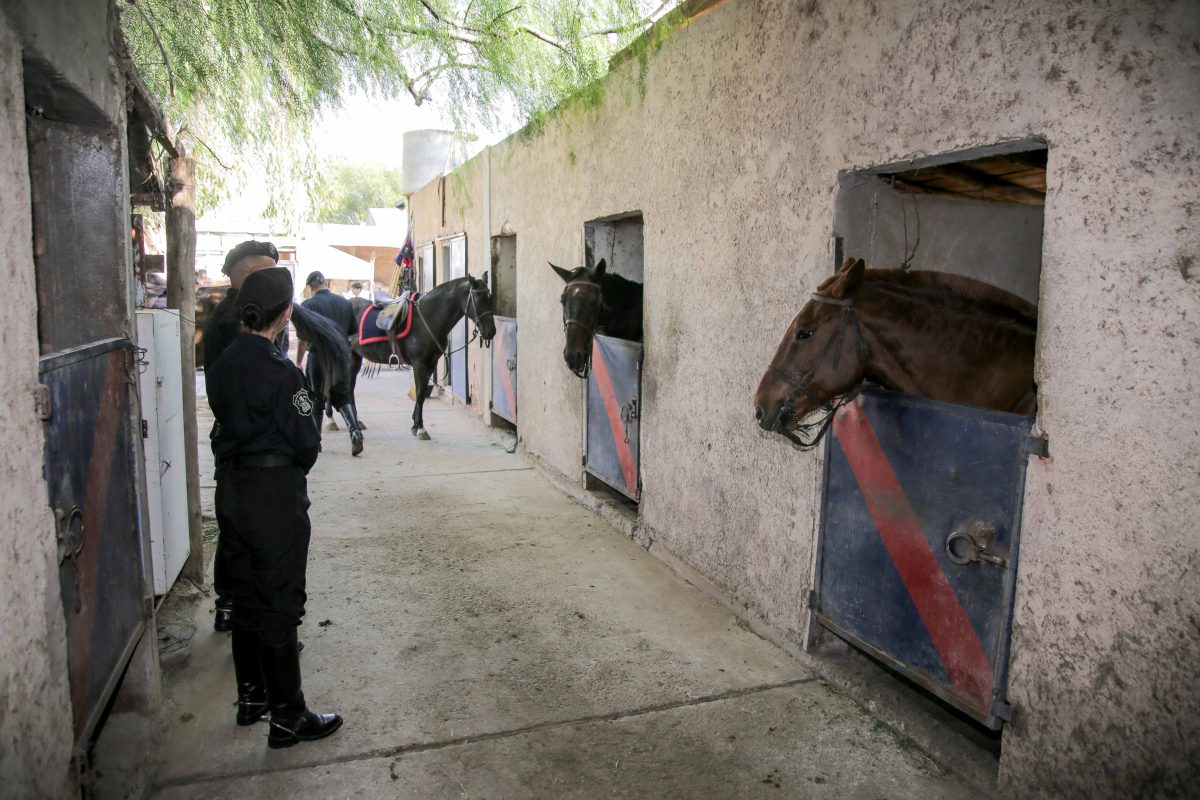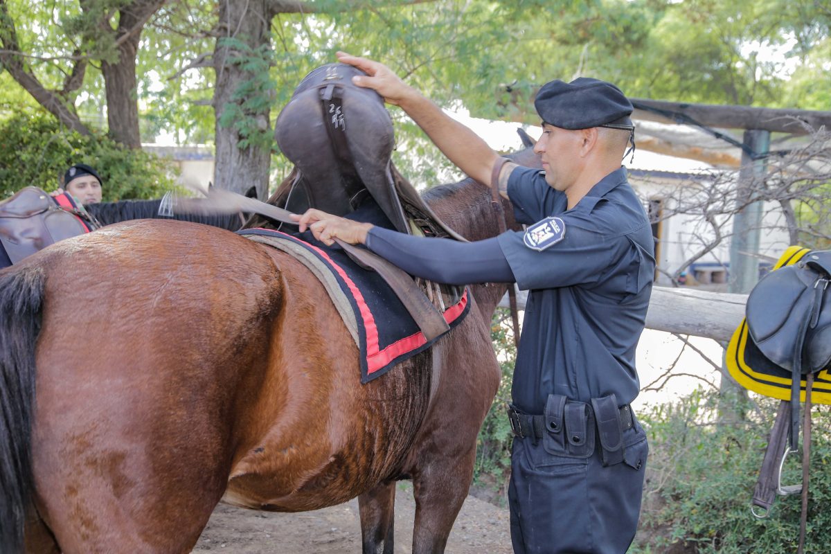 Actualmente, la unidad cuenta con 14 efectivos, dos camionetas adaptadas para el traslado de semovientes y dos tráilers, uno para dos y otro para seis equinos. Entre los animales activos se destacan Aymará, Bagual, Bienvenida, Carina, Pimienta, Pucará, Taimado y Yancanelo, todos preparados para continuar con las tareas preventivas y la presencia policial en eventos y espacios públicos.
