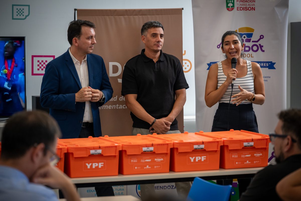 Este miércoles, en el edificio Conectar LAB del Polo TIC, dependiente de la Dirección General de Escuelas, el ministro de Educación, Cultura, Infancias y DGE, Tadeo García Zalazar, y el intendente de Guaymallén, Marcos Calvente, participaron en la presentación de la First Tech Challenge (FTC), una de las competencias internacionales de robótica escolar más importantes del mundo, que se realizará durante el 27 y 28 de febrero próximo por primera vez en Mendoza, precisamente, en Guaymallén.