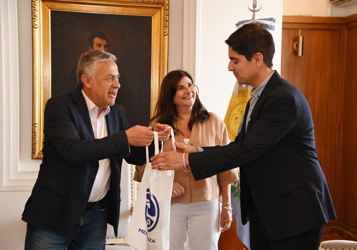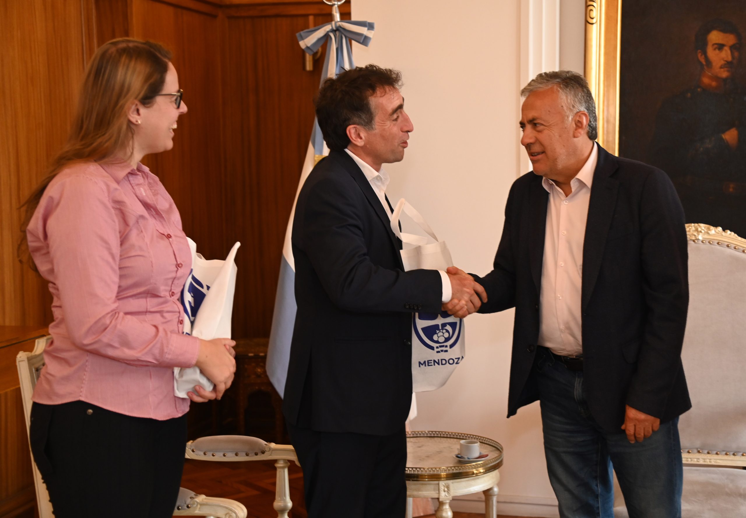 El Gobernador Alfredo Cornejo y la titular de Emetur, Gabriela Testa, recibieron hoy a Luciano Arziaga, gerente de Desarrollo Internacional de Grupo Gol; Martín Ojeda, gerente de Gol en Mendoza, Bariloche y Ushuaia, y Cecilia Breitenvieser.