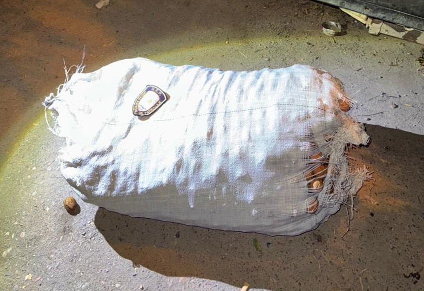 Cuatro de los procedimientos ocurrieron en Finca Fazzio, ubicada en calle Los Cuatro, en la zona de Cordón del Plata. Allí, durante la madrugada del domingo, mientras el personal realizaba patrullajes preventivos en el interior del predio, se observó en uno de los cuadros una bolsa de arpillera con nueces en su interior, con un peso aproximado de 30 kilos.