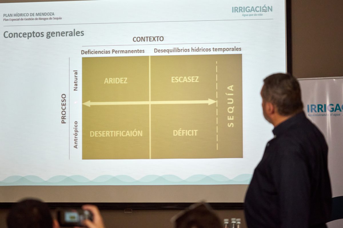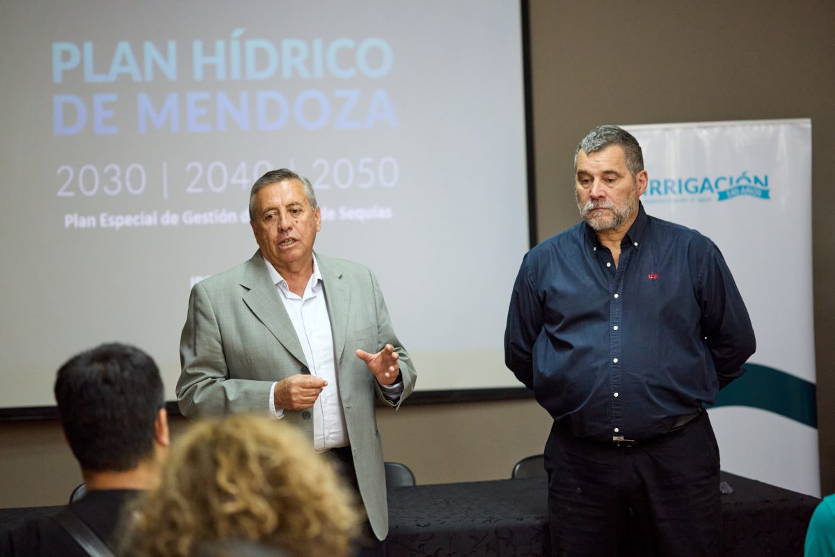 El superintendente de Irrigación, Sergio Marinelli, y el director de Gestión Hídrica, Rubén Villodas, presentaron el Plan Especial de Gestión del Riesgo de Sequía (PEGRIS), que forma parte del Plan Hídrico de la Provincia de Mendoza que se encuentra en elaboración y establece los lineamientos obligatorios y recomendaciones técnicas para la gestión preventiva y proactiva del riesgo de sequías en la provincia al 2050.