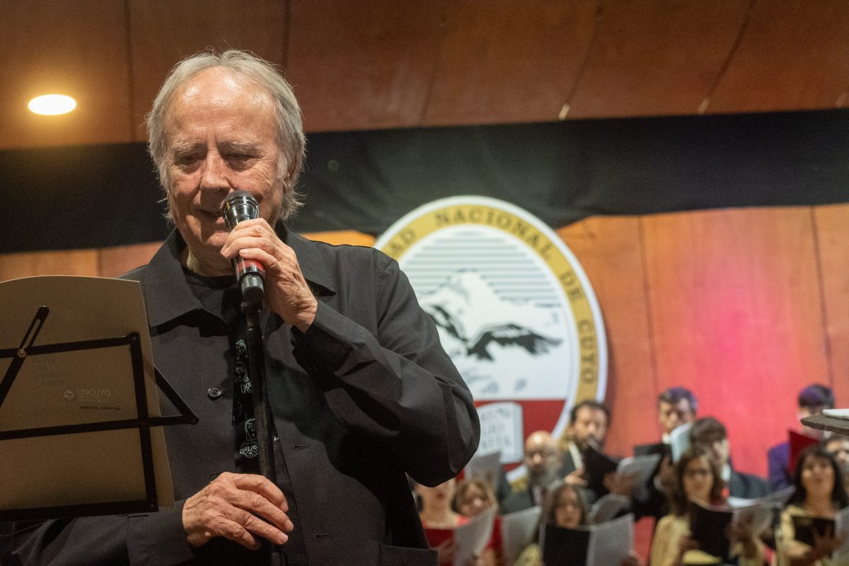 En una actividad organizada por la Universidad Nacional de Cuyo y la Subsecretaría de Cultura del Gobierno de Mendoza, Joan Manuel Serrat fue recibido con un concierto especial que funcionó como antesala del reconocimiento institucional que recibirá de la casa de estudios. Participaron del evento la rectora de la UNCuyo, Esther Sánchez; el subsecretario de Cultura, Diego Gareca, y otras autoridades provinciales y universitarias.