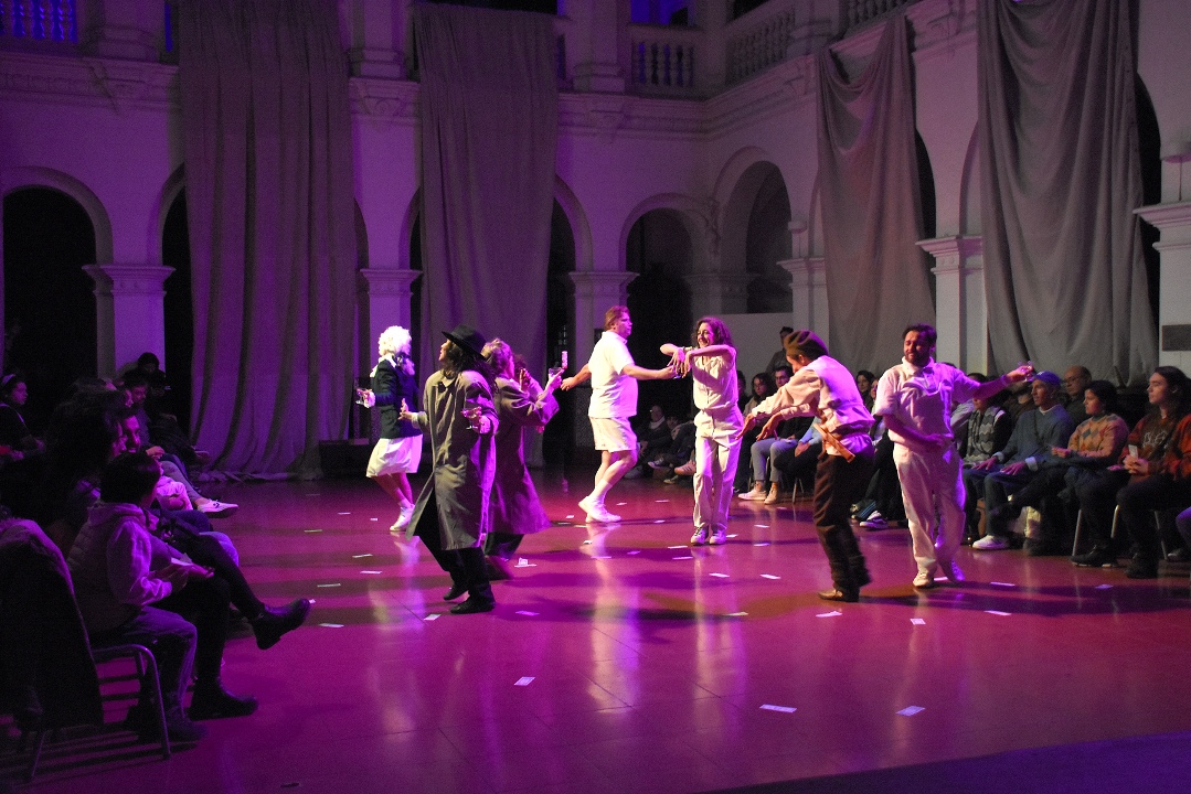 El espacio elegido para la puesta, el antiguo Banco Hipotecario (hoy sede de la Subsecretaría de Cultura de Mendoza), refuerza simbólicamente la temática: un lugar real de transacciones financieras convertido en escenario de una historia sobre préstamos, intereses y desigualdad.