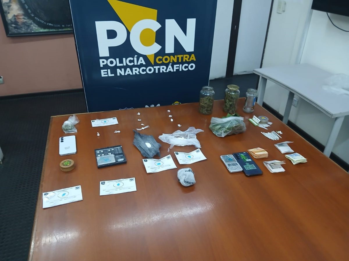 Los operativos también permitieron secuestrar 154 gramos de cocaína, 143 gramos de marihuana, $235.200 en efectivo, siete teléfonos celulares y elementos de corte y fraccionamiento, evidencia directa de la actividad ilícita.