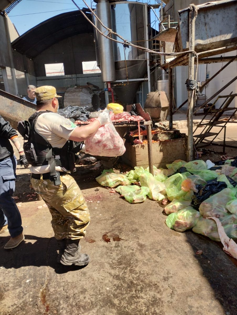 Como resultado, se procedió al decomiso de 240 kilos de carne vacuna, cerdo, pollo, achuras, embutidos, conservas y cueros de mondongo, que fueron trasladados al matadero para su desnaturalización y destrucción.