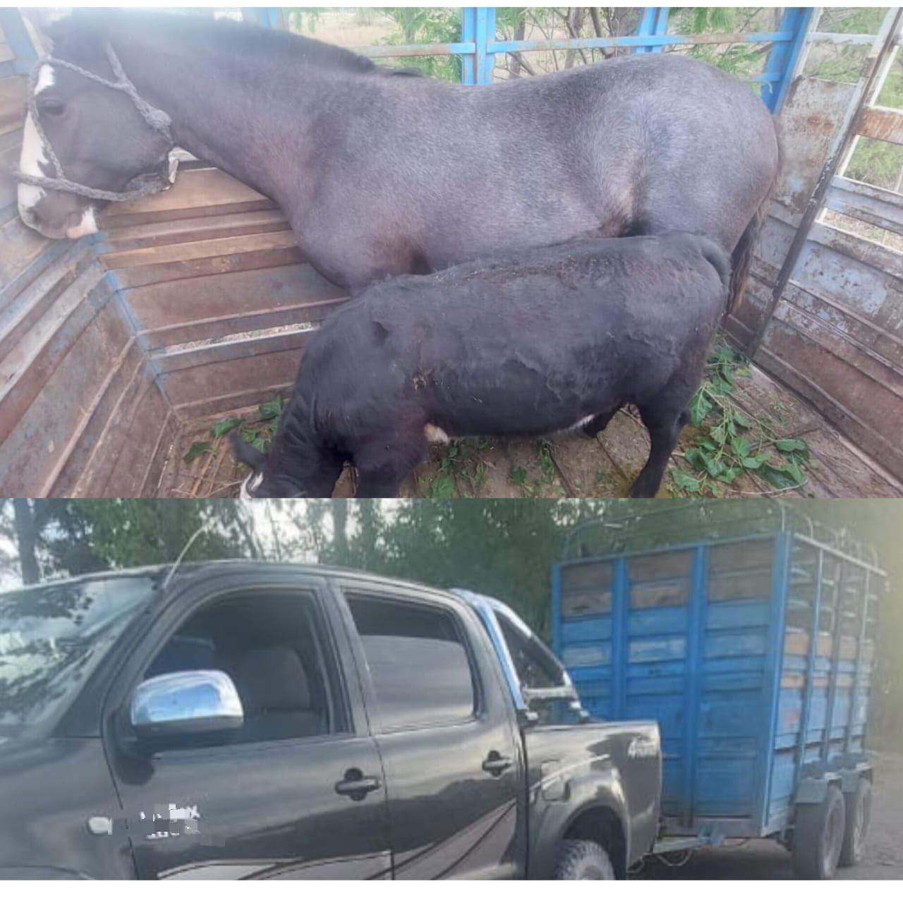 El primer hecho ocurrió sobre calle 10 y calle E, cuando personal de la dependencia procedió al control de una camioneta en la que se transportaban un equino y un bovino en un tráiler. Ambos animales presentaban orejas marcadas a fuego, pero no contaban con documentación que acreditara su propiedad.