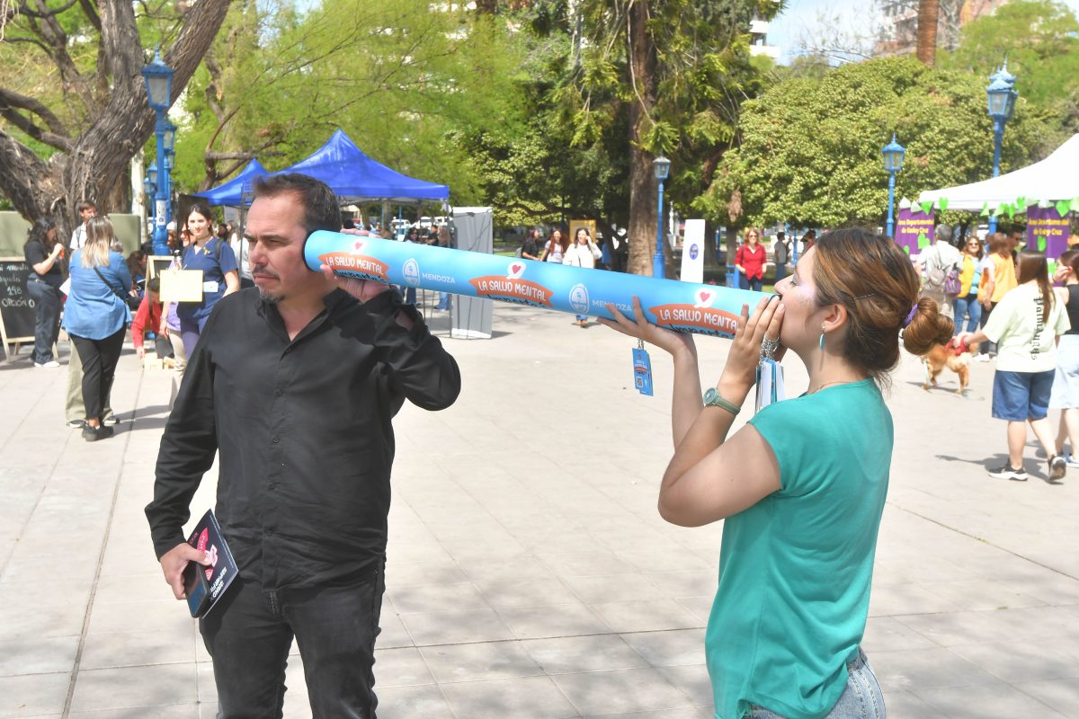 La cita tuvo lugar este jueves, entre las 9 y las 14, en la plaza Independencia. Allí, espacios de salud mental de hospitales y centros de formación en enfermería de la provincia se convocaron con folletería y actividades lúdicas y artísticas para concientizar a la comunidad.