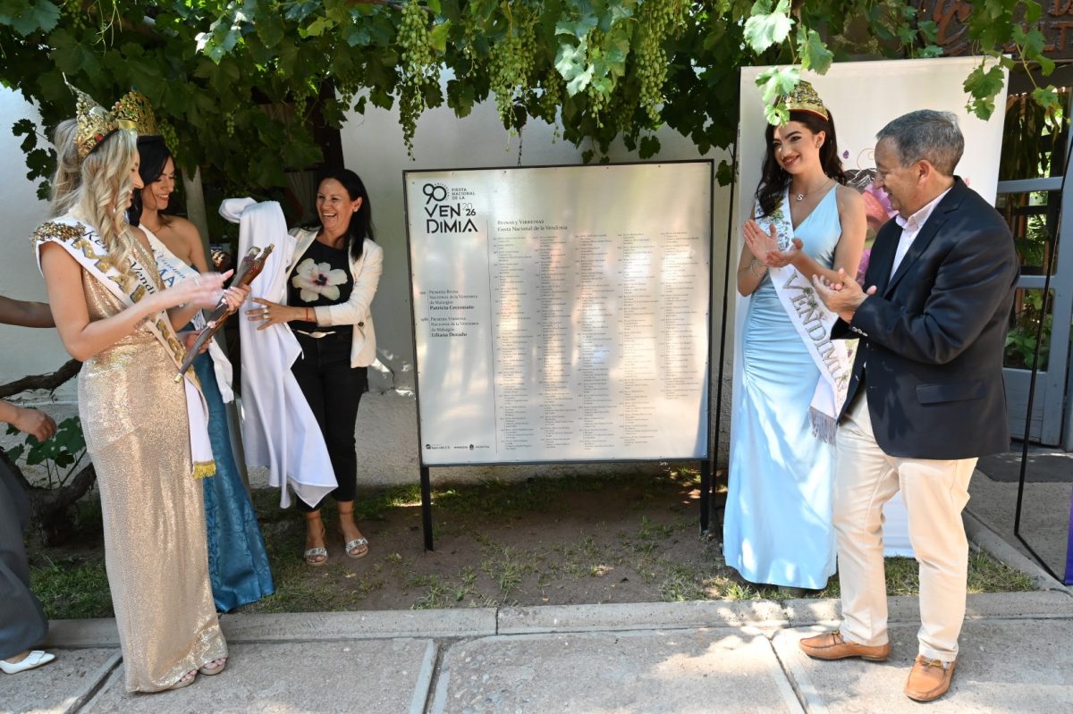 En este marco, junto con ambas municipalidades, se realizó el descubrimiento de una placa conmemorativa en homenaje a las reinas y virreinas nacionales de cada departamento, en el marco del 90º aniversario de la Fiesta Nacional de la Vendimia.