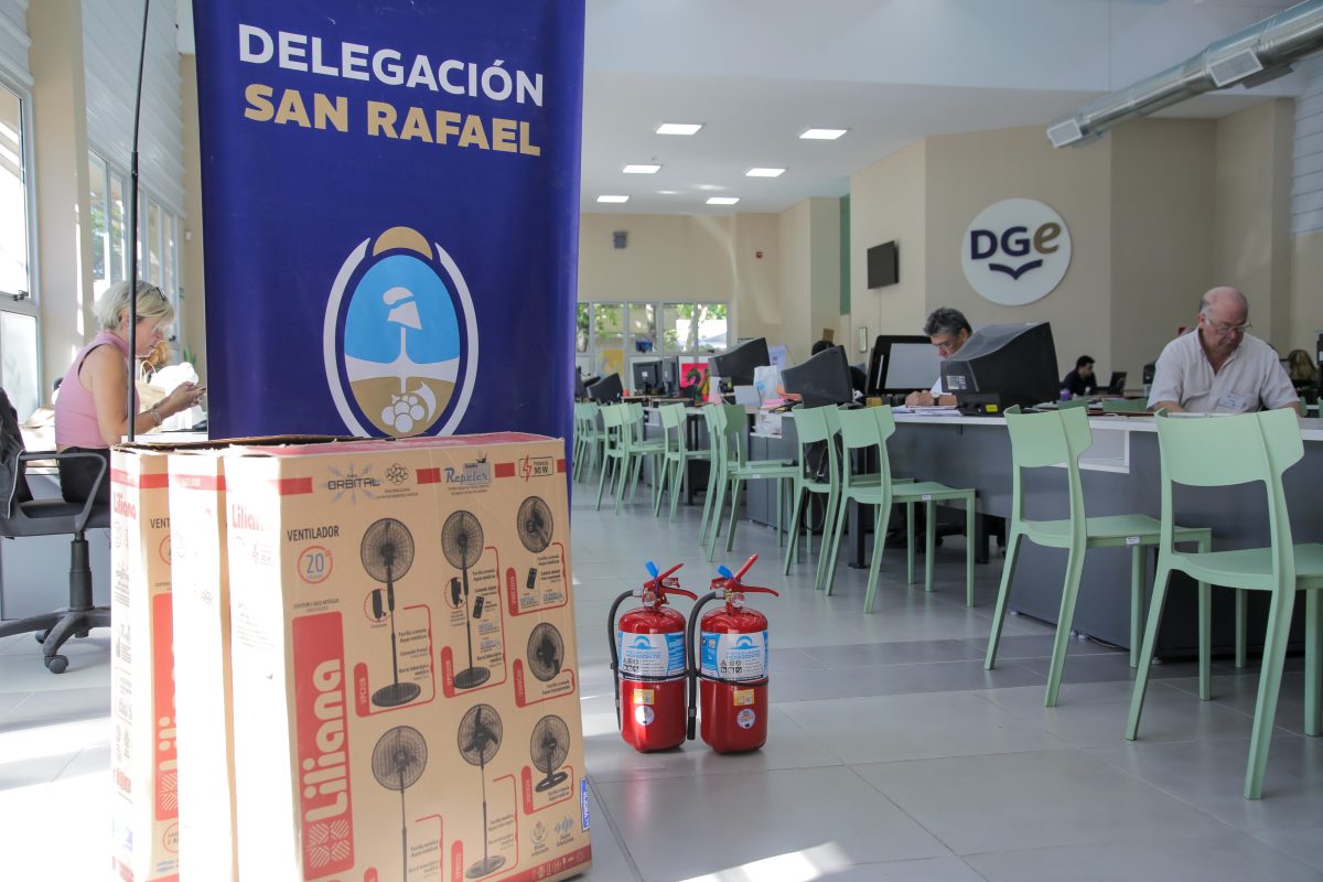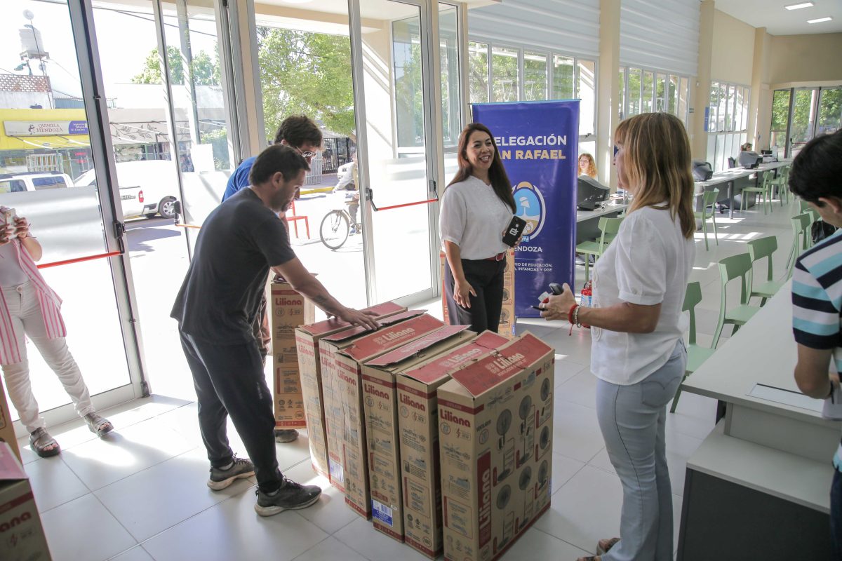 Durante la jornada de este martes, la Delegación Regional también entregó ventiladores y extintores a escuelas del Sur provincial. María José Sanz indicó que los directores se acercaron al Centro Cívico para retirar los ventiladores de pared para sus instituciones. “Hay escuelas de nivel inicial, primarias, secundarias, CENS y CCT que han recibido 106 ventiladores, y también se entregaron 31 extintores a las escuelas que los estaban solicitando”, manifestó.